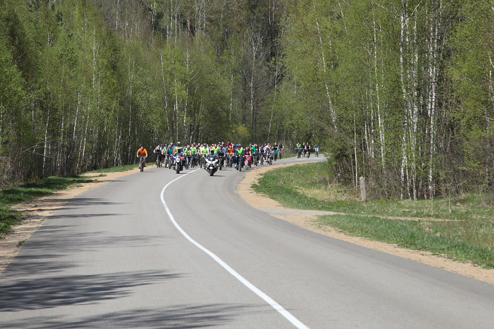 После официального открытия велопробега, которое состоялось на Заводской площади в сопровождении патрульных автомобилей и мотоциклов ГИБДД под звуки Гимна Победы стройными рядами участники заезда продолжили свой путь по маршруту г. Киров – село Покров, к месту захоронения воинов павших в годы ВОВ.