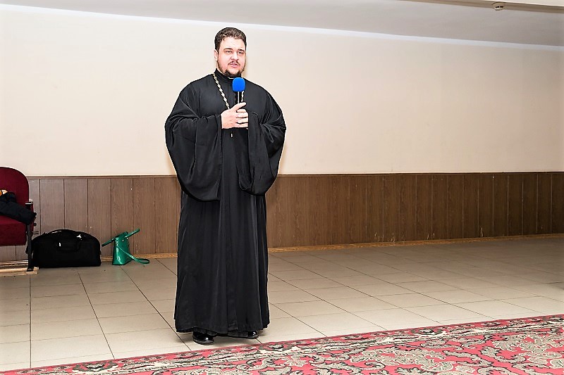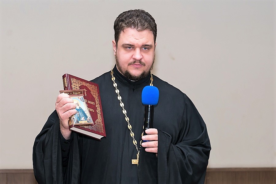 Далее слова поздравлений произнес благочинный Песоченского округа, настоятель кафедрального собора святого благоверного князя Александра Невского протоиерей Александр Рябов.