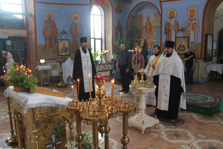 По прочтении евангельского зачала, отец Александр поздравил молящихся с праздником и ознакомил с расписанием богослужений на предстоящую седмицу, после чего Высокопреосвященнейший владыка совершил елеопомазание духовенства и прихожан.