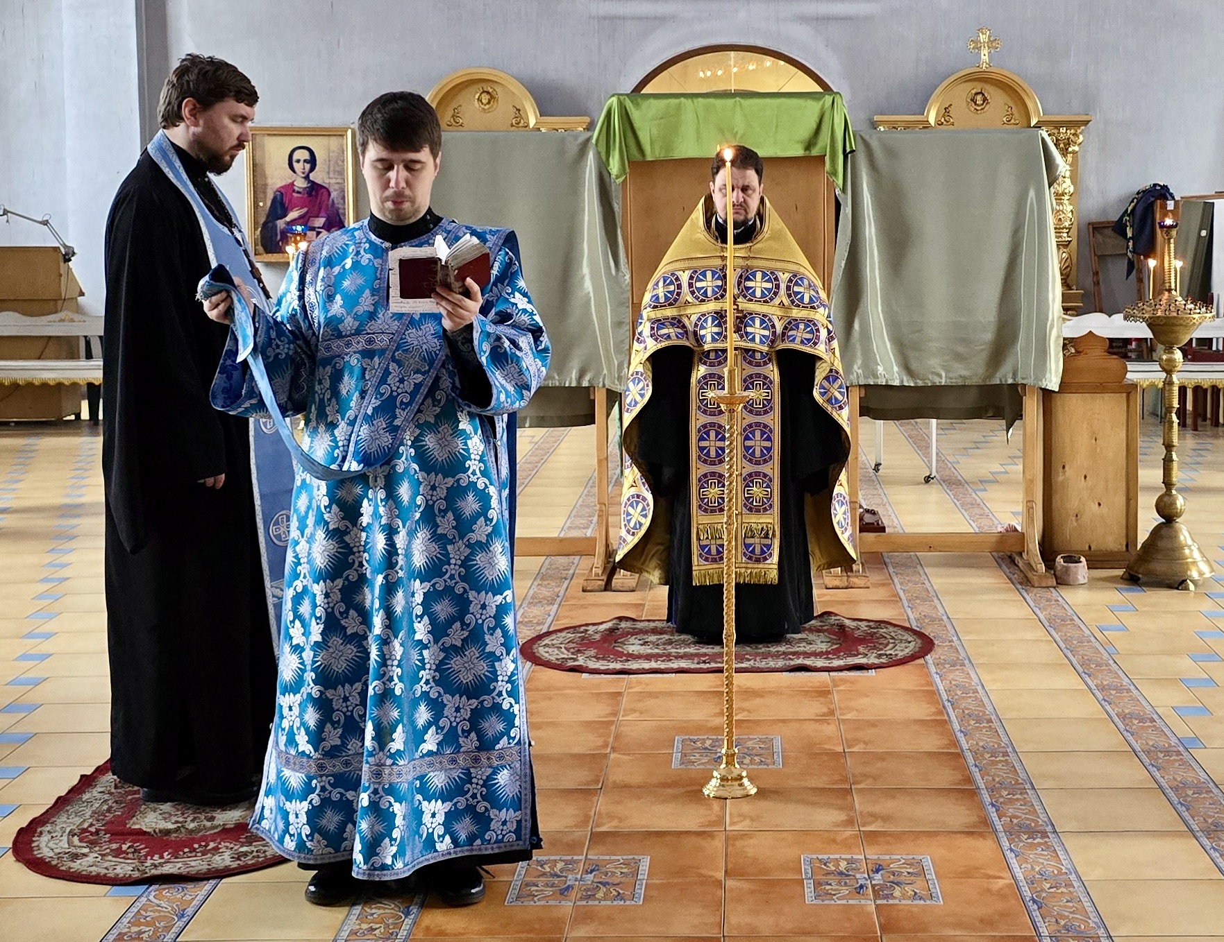 Богослужение возглавил протоиерей Александр Рябов – настоятель собора в сослужении иерея Михаила Камышева, диакона Евгения Иванова – клириков собора.