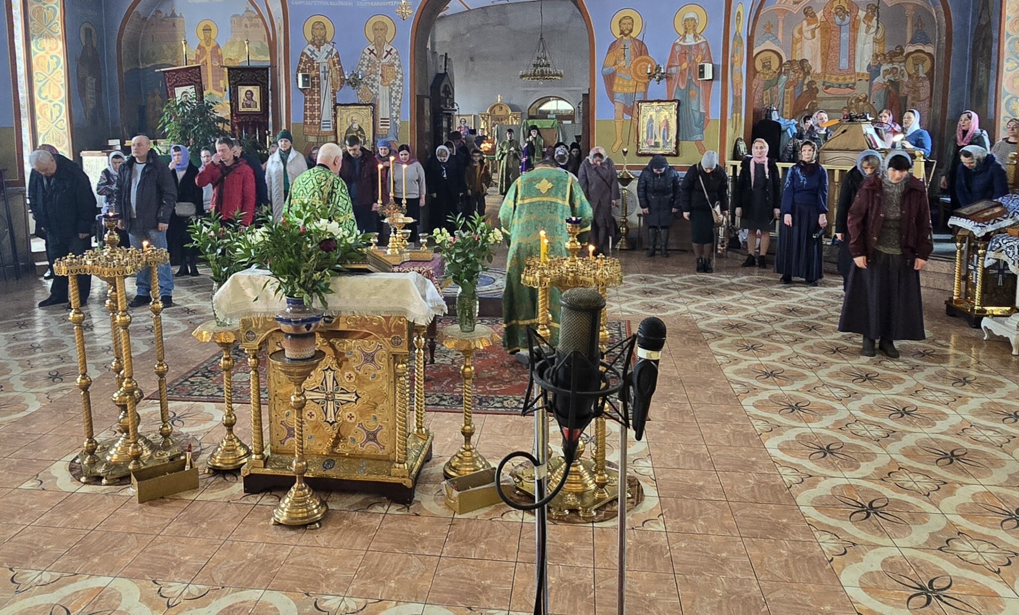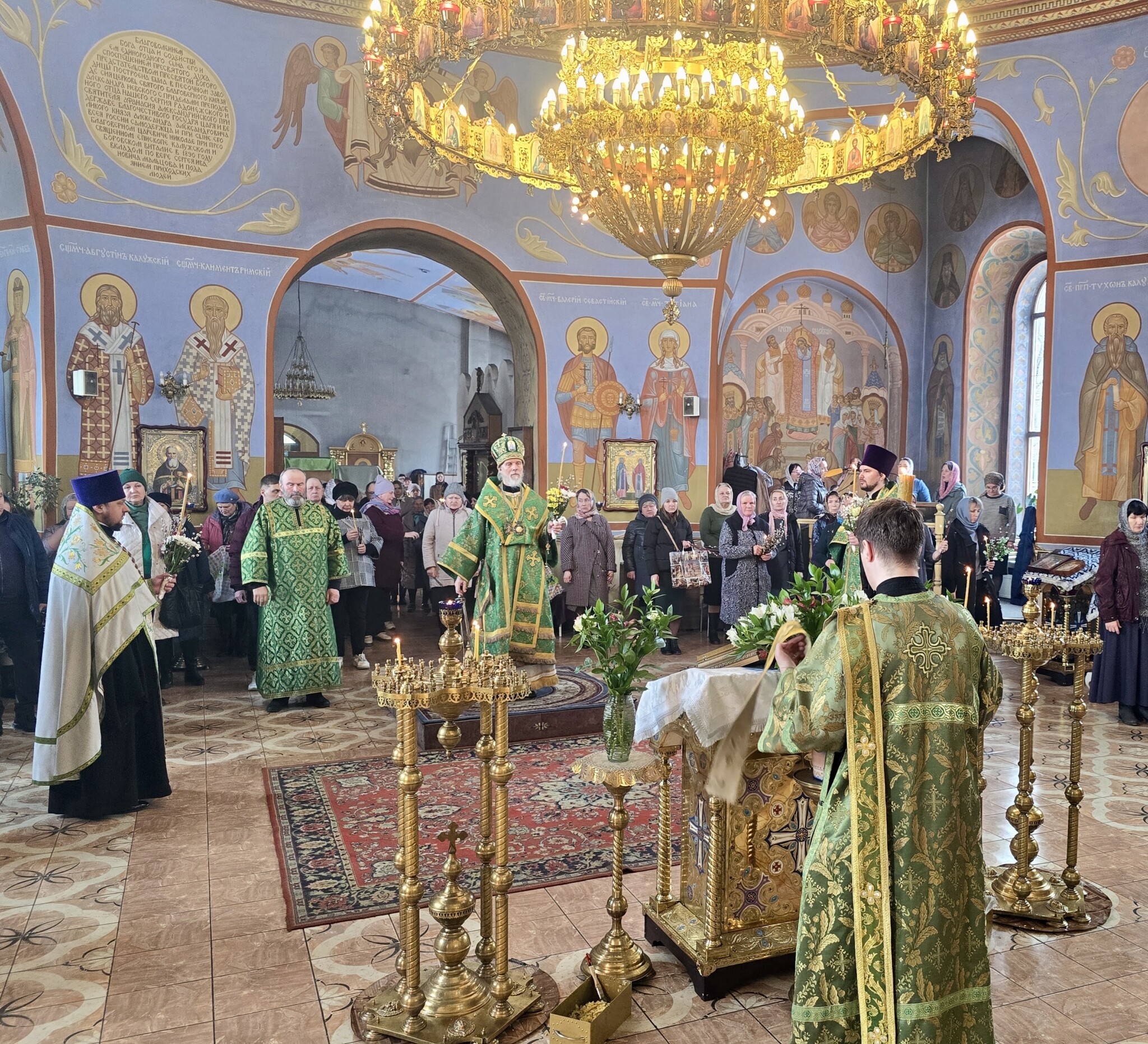 По прочтении праздничного евангельского зачала настоятель поздравил молящихся с праздником и ознакомил в расписание служб Страстной Седмицы.