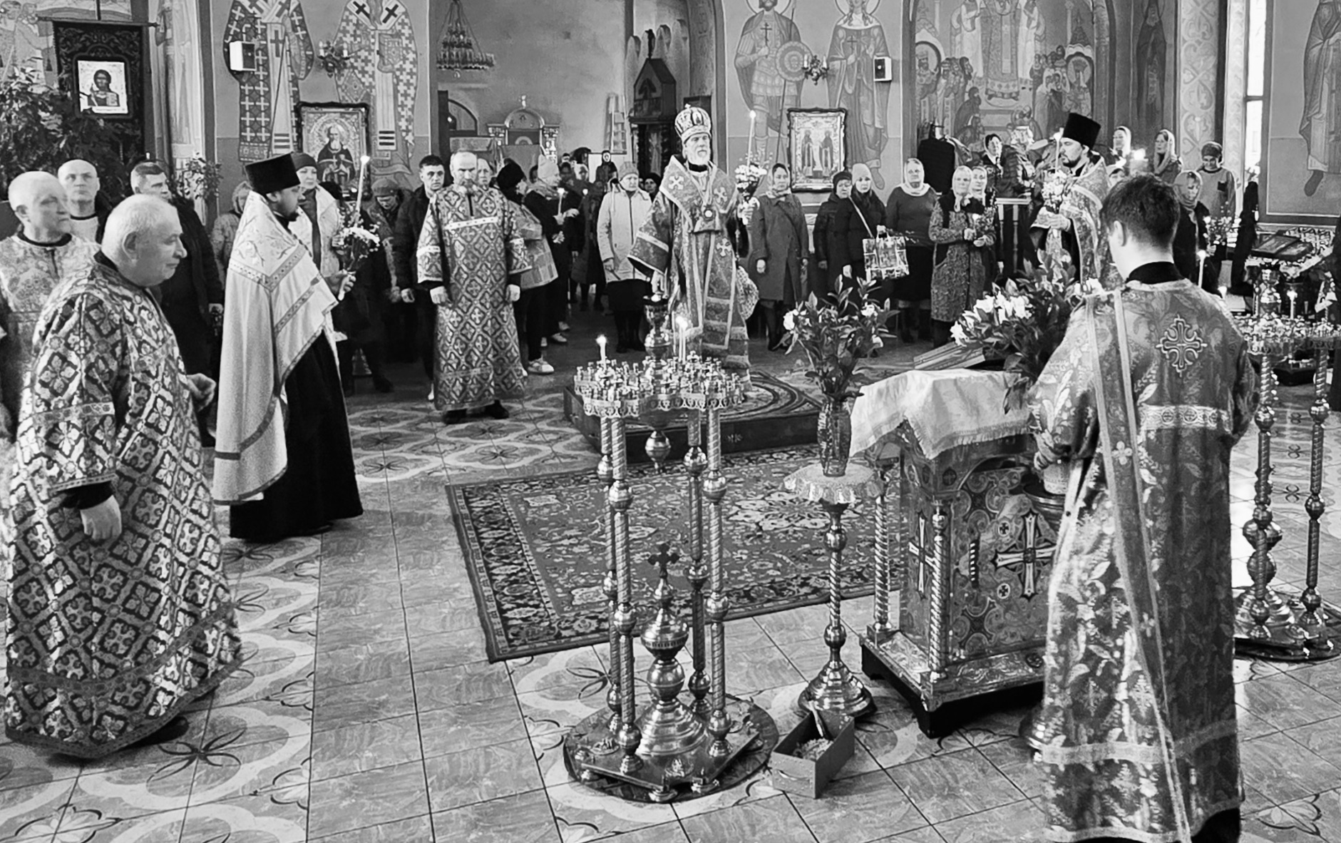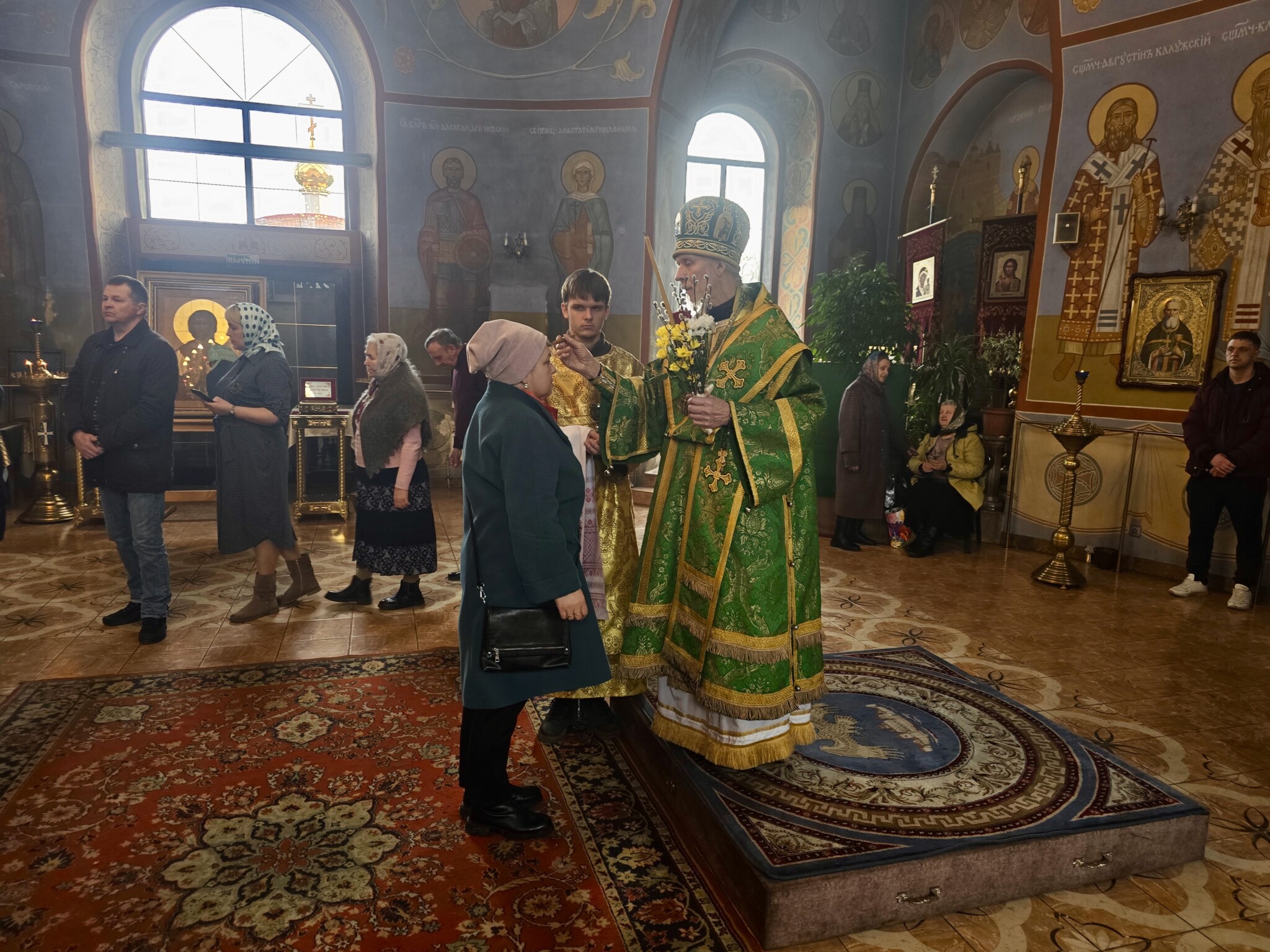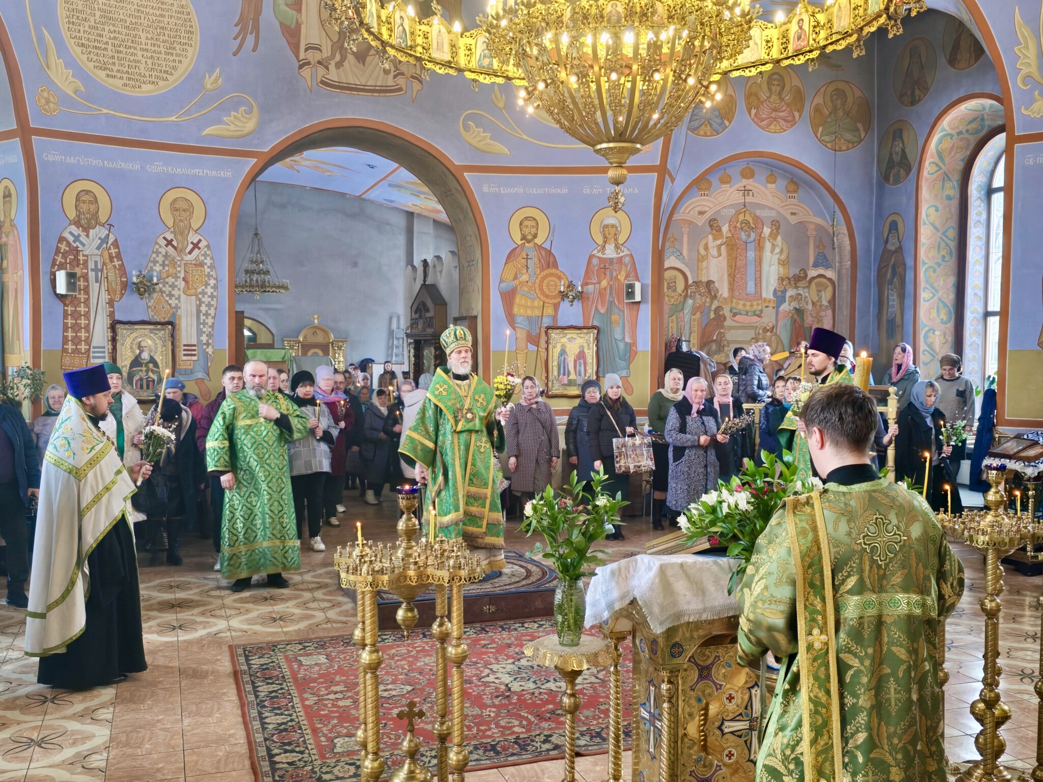 12 апреля 2025 года, накануне праздника Входа Господня в Иерусалим, в кафедральном соборе святого благоверного великого князя Александра Невского было совершено праздничное Всенощное бдение.