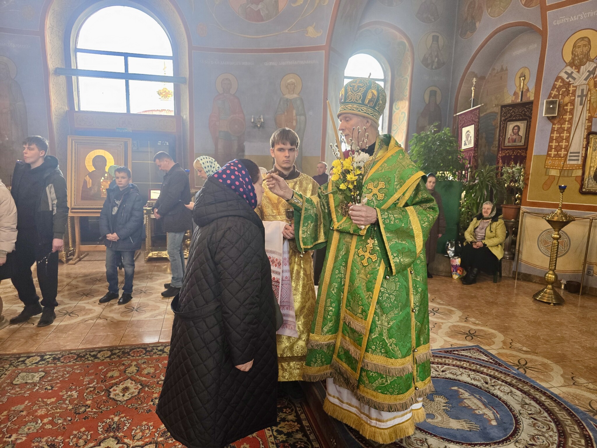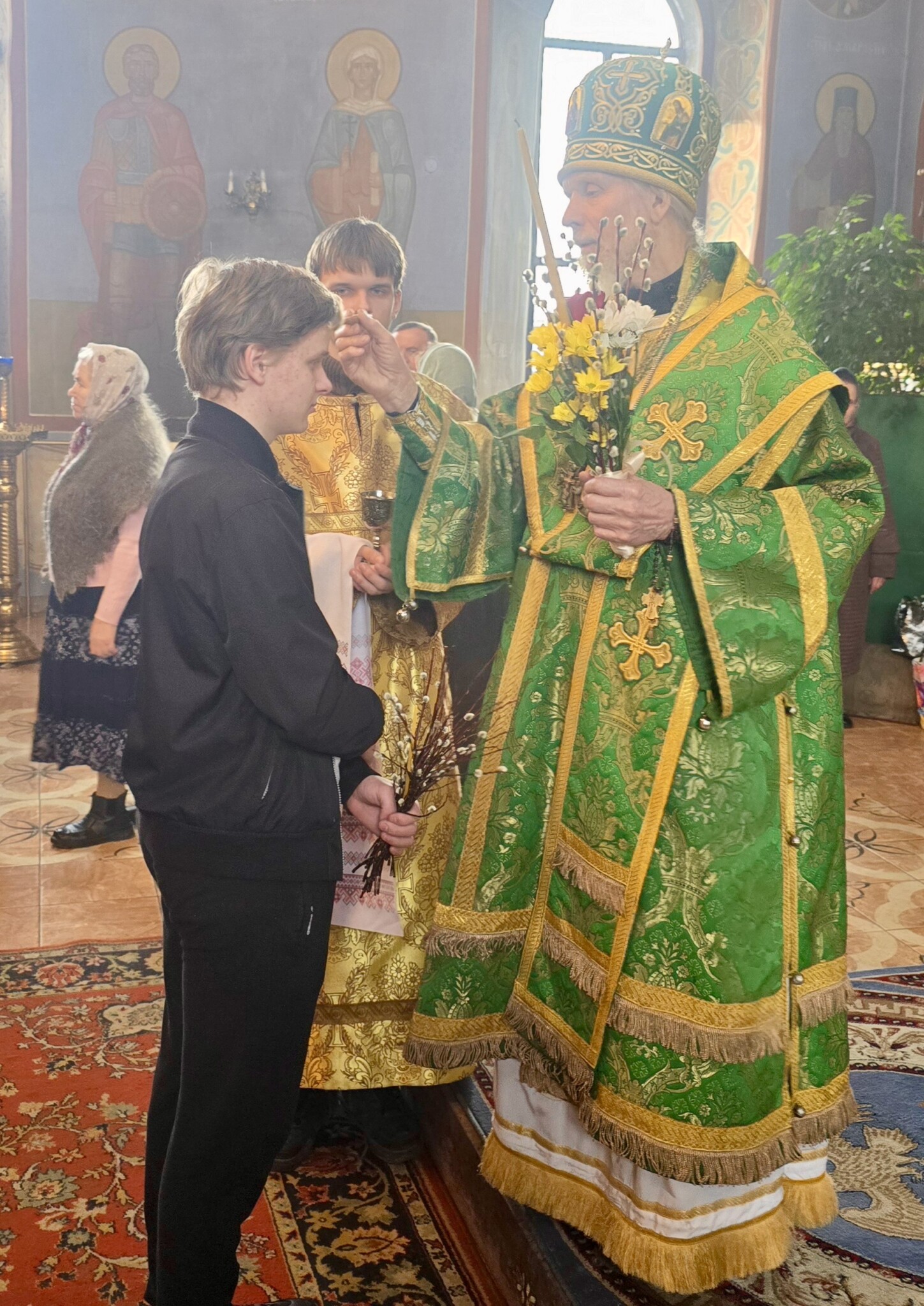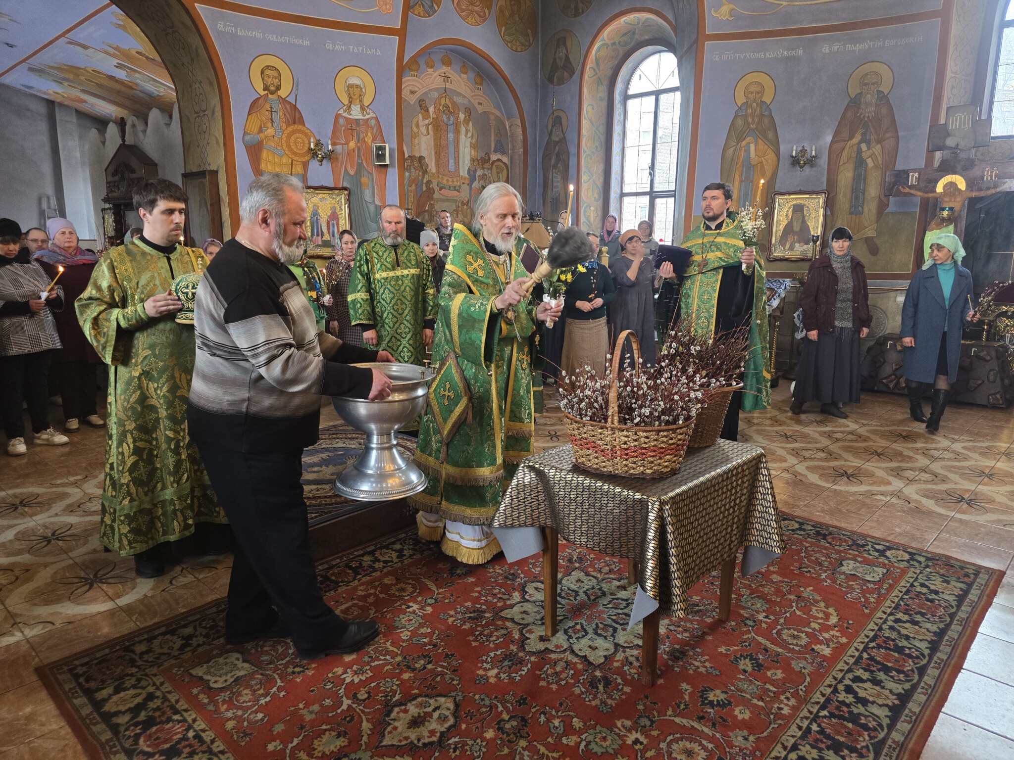 Затем было совершено освящения верб и елеопомазание прихожан.