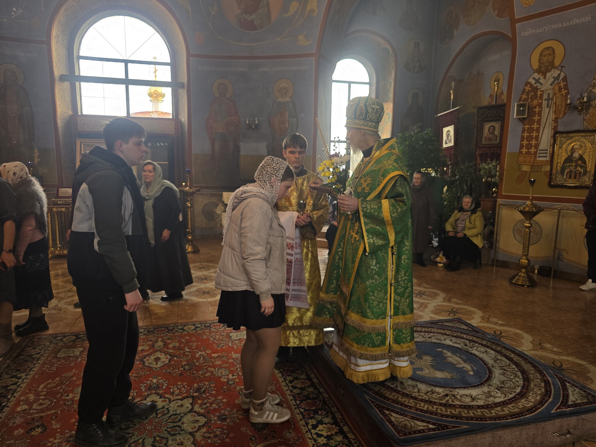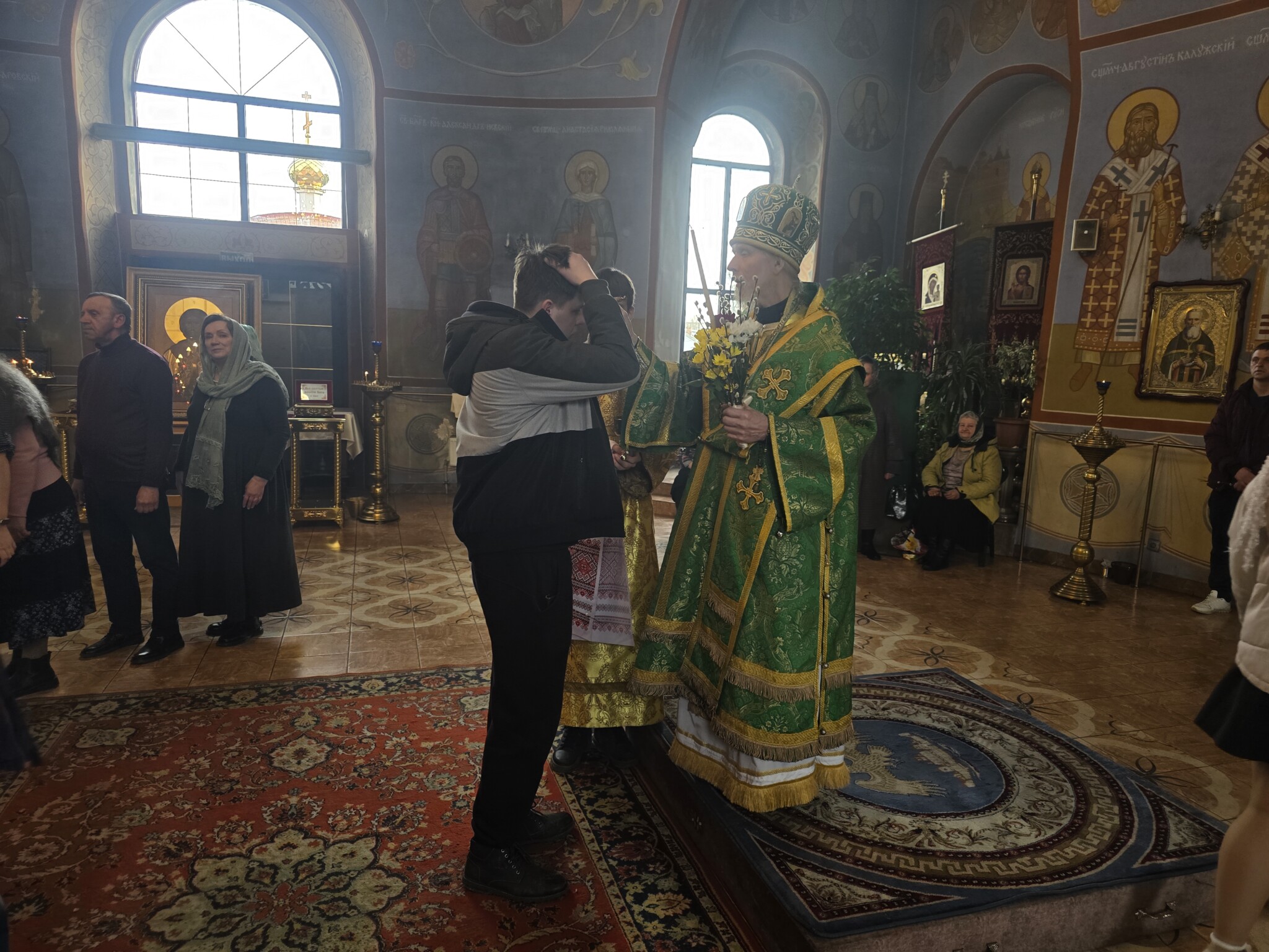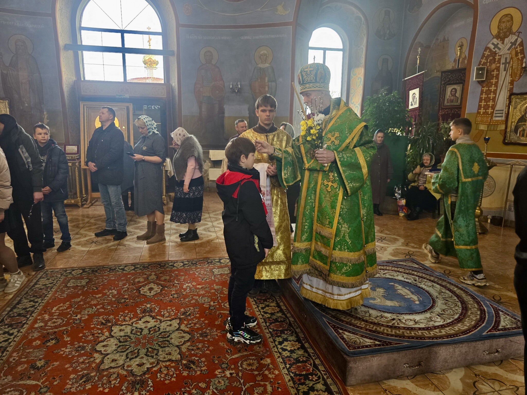 Затем было совершено освящения верб и елеопомазание прихожан.