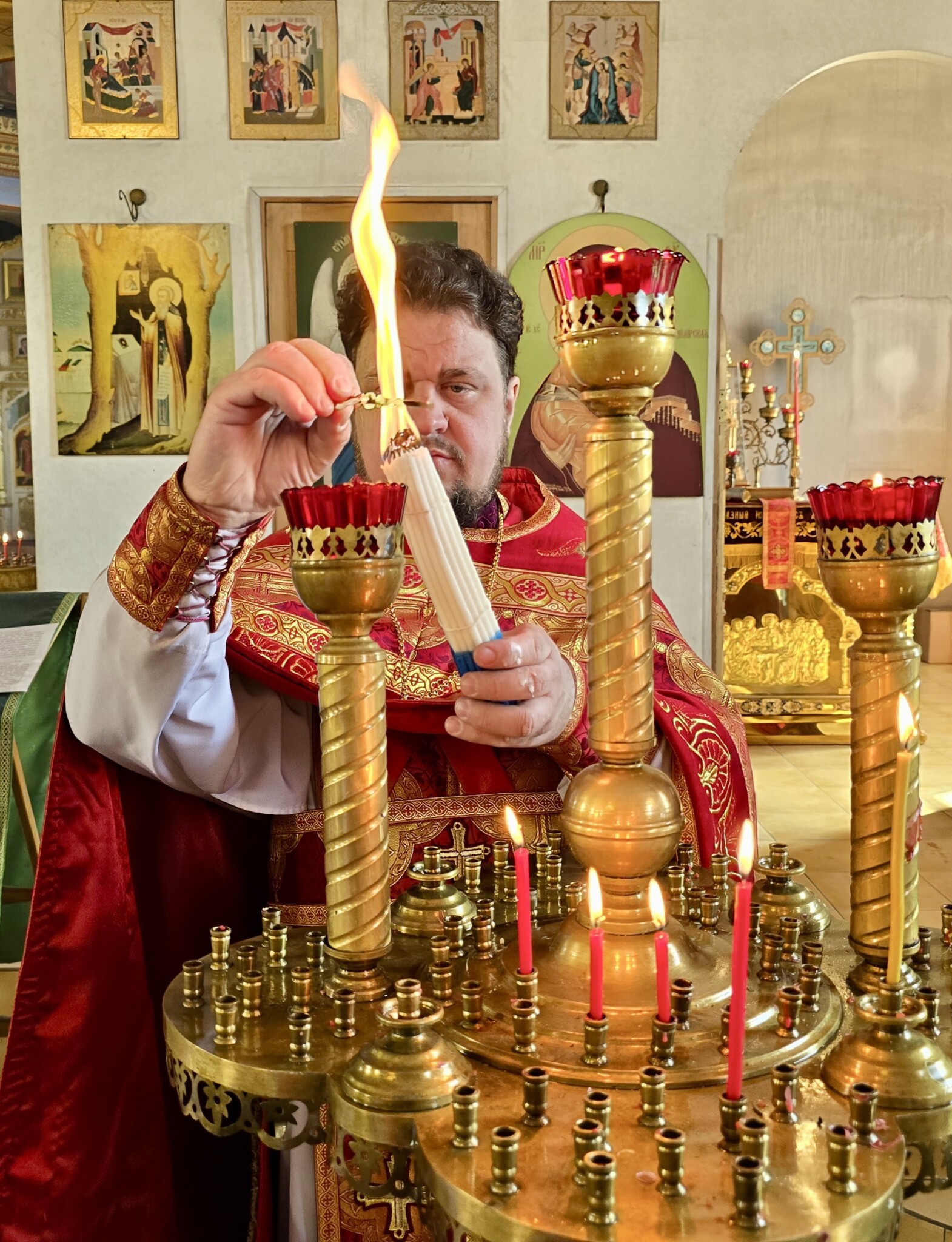 По окончании литургии отец Михаил поздравил молящихся с праздником Пасхи.