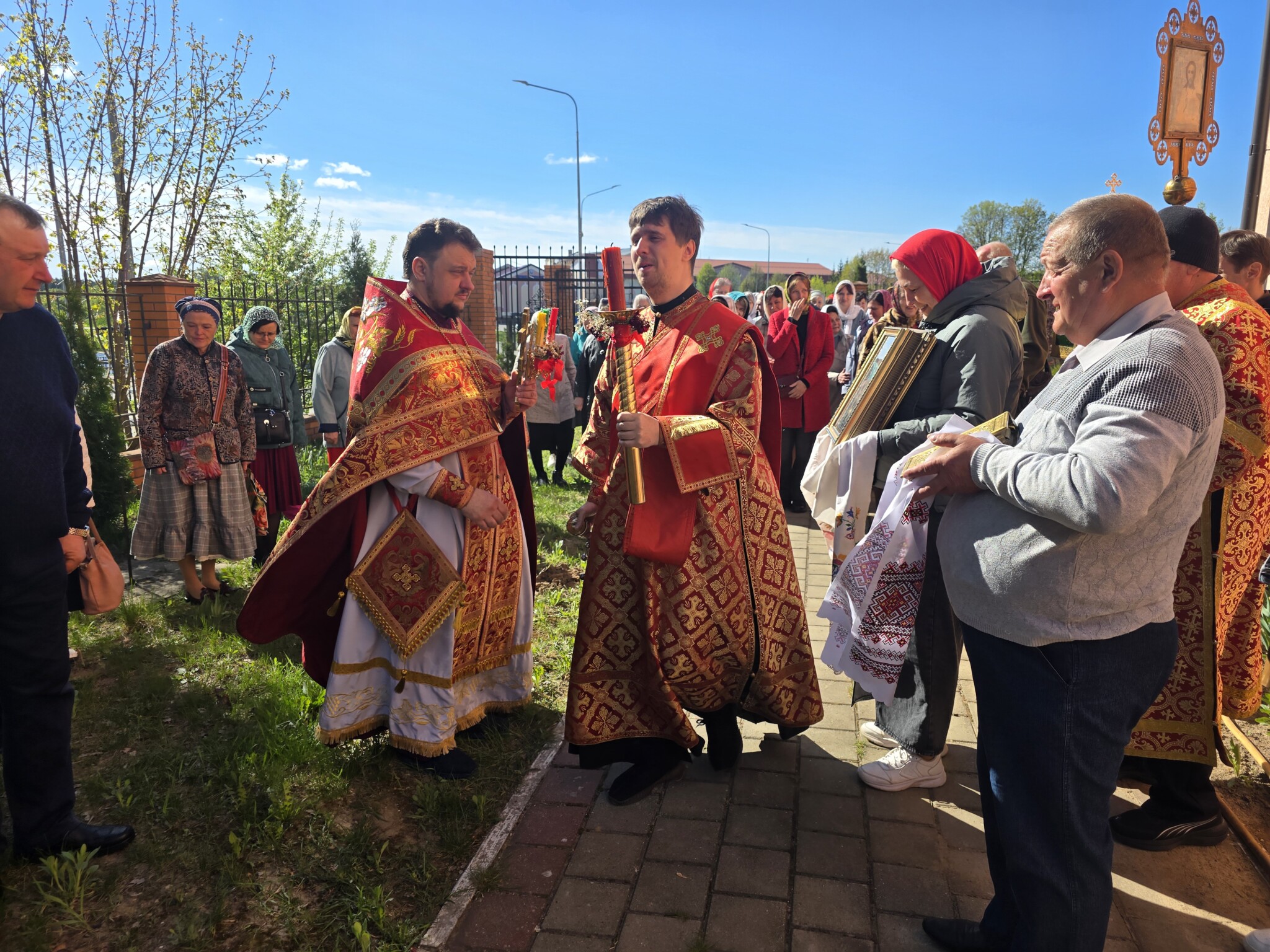 После чтения заамвонной молитвы было совершено молитвословие на раздробление артоса и Крестный ход вокруг храма.