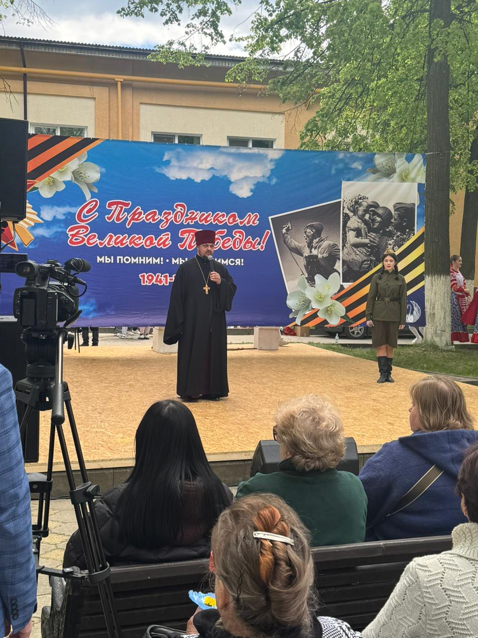 Благочинный Песоченского округа, настоятель кафедрального собора святого благоверного великого князя Александра Невского протоиерей Александр Рябов принял участие в праздничном мероприятии «Великий май — Великая Победа!», посвящённом 80-летию Победы в Великой Отечественной войне.