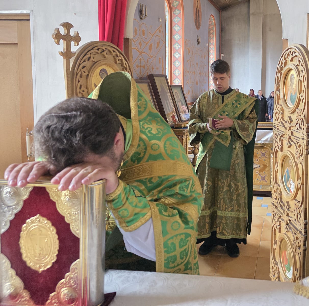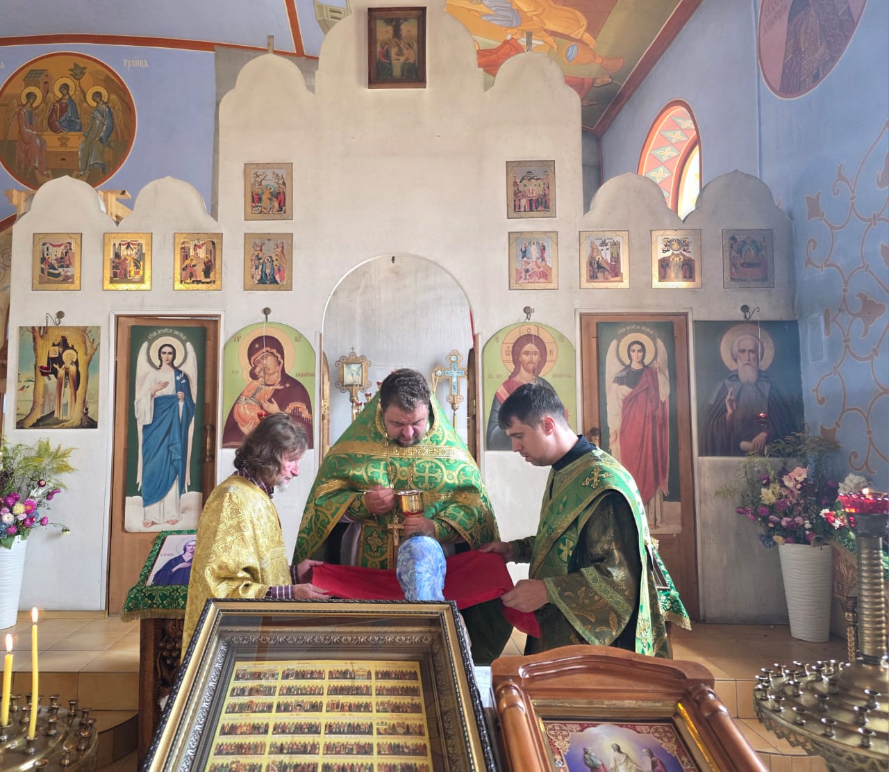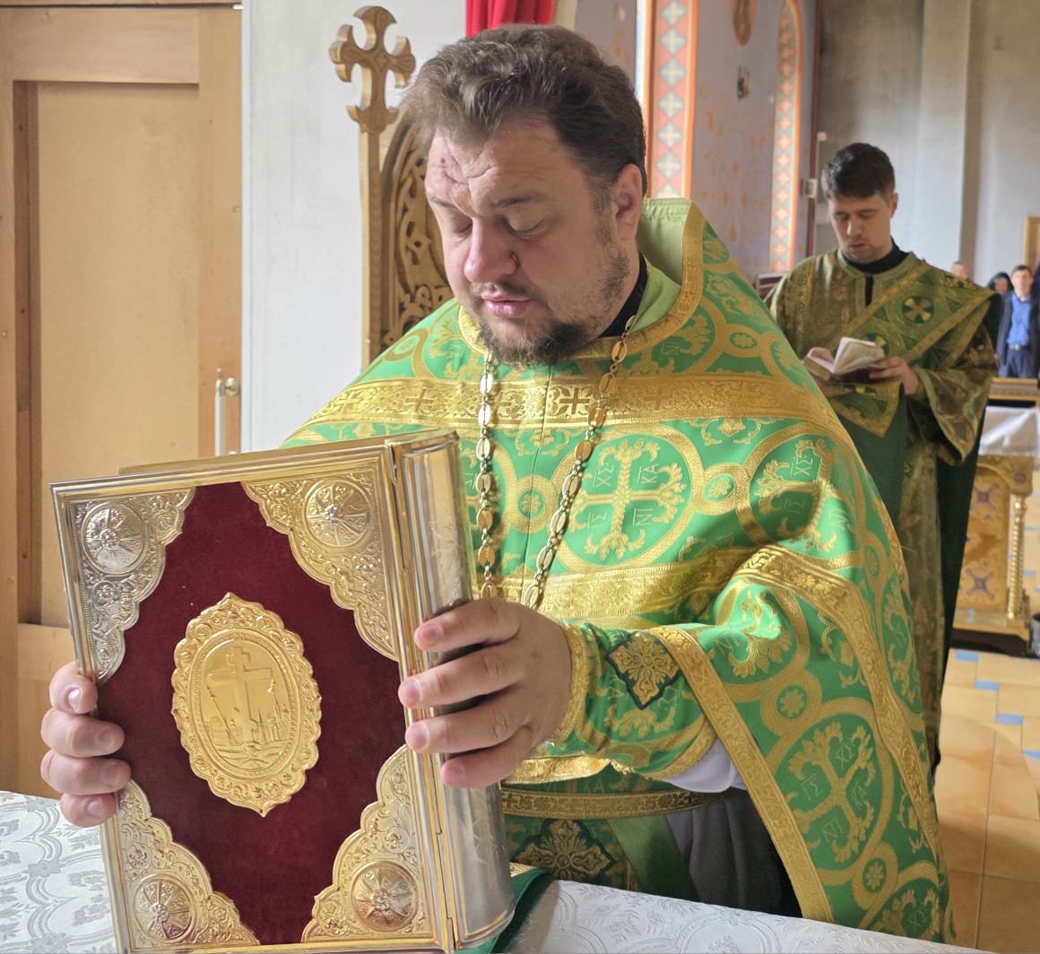 Богослужение совершил клирик протоиерей Александр Рябов — настоятель собора при диаконе Евгение Иванове.
