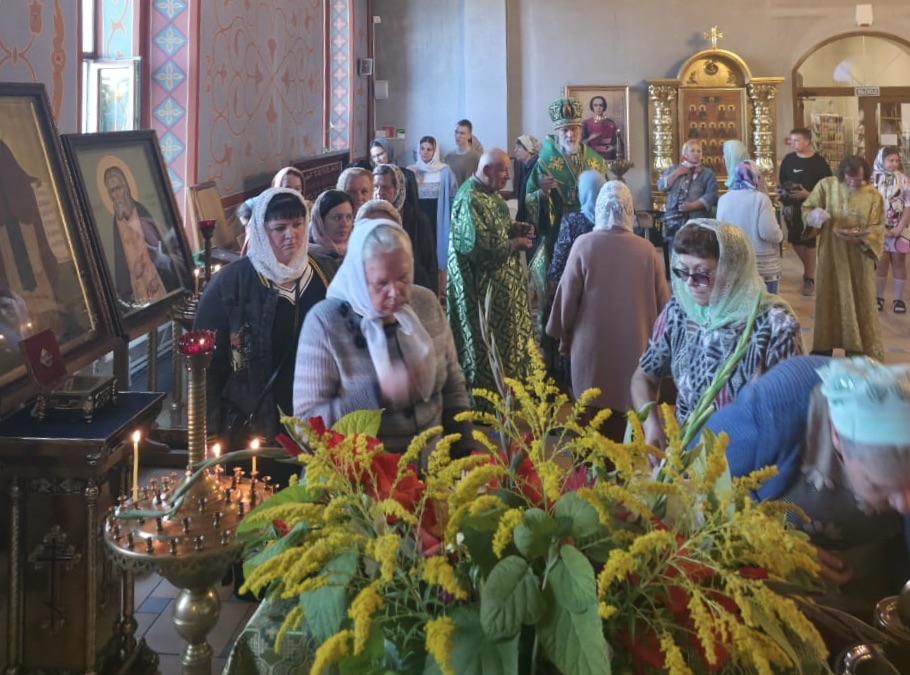 По прочтении евангельского зачала, отец Александр поздравил молящихся с праздником и ознакомил с расписанием богослужений, после чего Высокопреосвященнейший владыка совершил елеопомазание духовенства и прихожан.