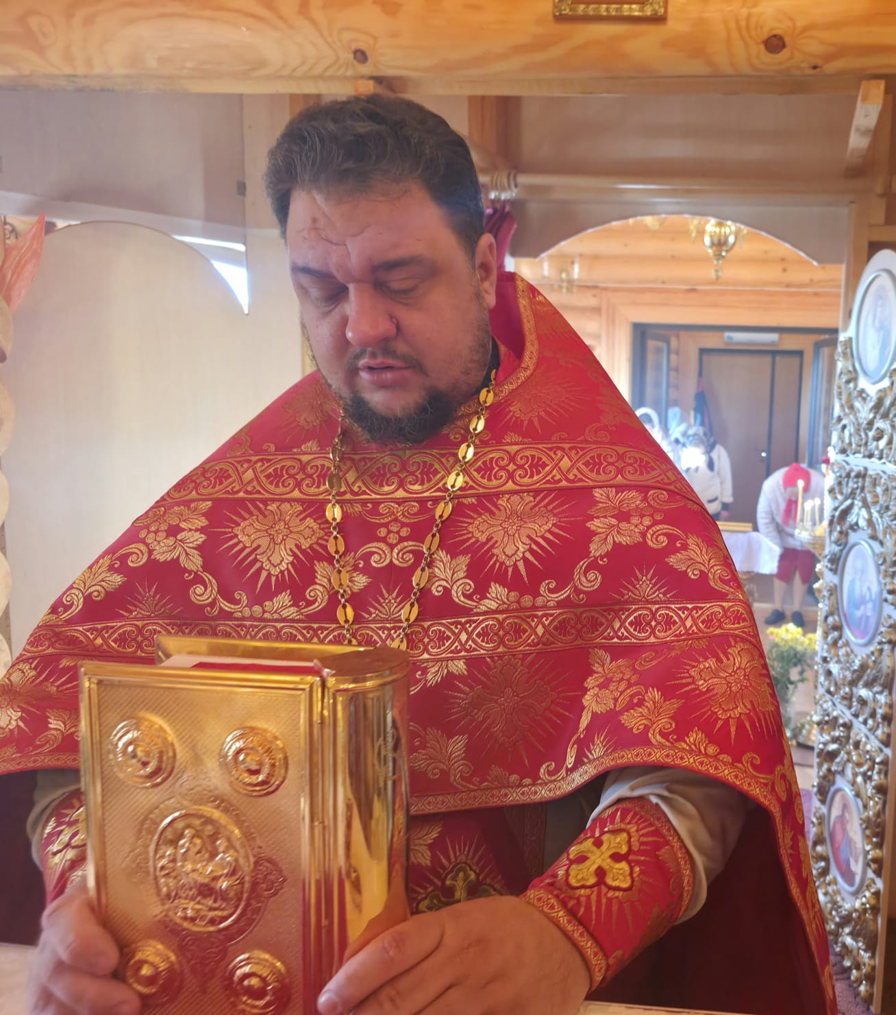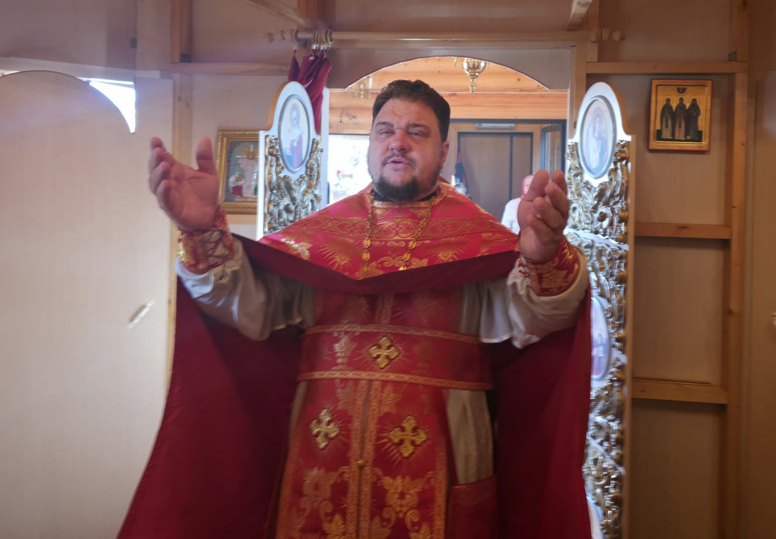 После чтения заамвонной молитвы был совершен Крестный ход вокруг храма. Затем священник обратился к молящимся с проповедью.