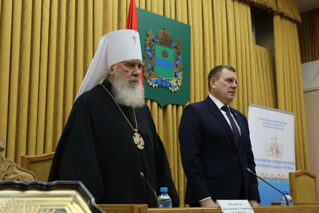 В зале заседаний Правительства Калужской области в рамках XXVIII Богородично-Рождественских образовательных чтений Калужской митрополии «Просвещение и нравственность: формирование личности и вызовы времени» прошла IX Парламентская встреча с депутатами Законодательного Собрания Калужской области на тему «Духовно-нравственное развитие детей и молодежи: выработка единого подхода в сфере образования, науки и культуры».