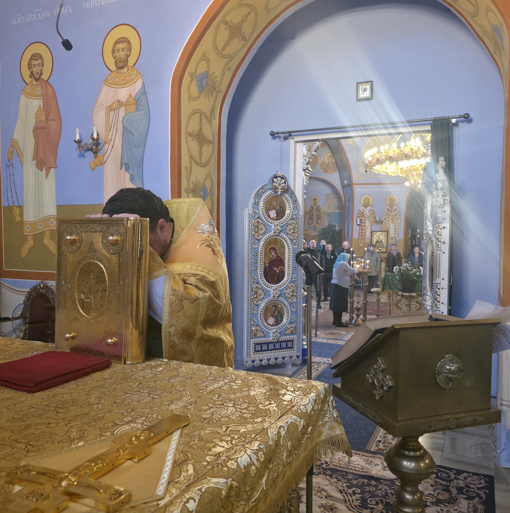 Богослужение возглавил настоятель собора протоиерей Александр Рябов при иерее Михаиле Камышеве — клирике собора.
