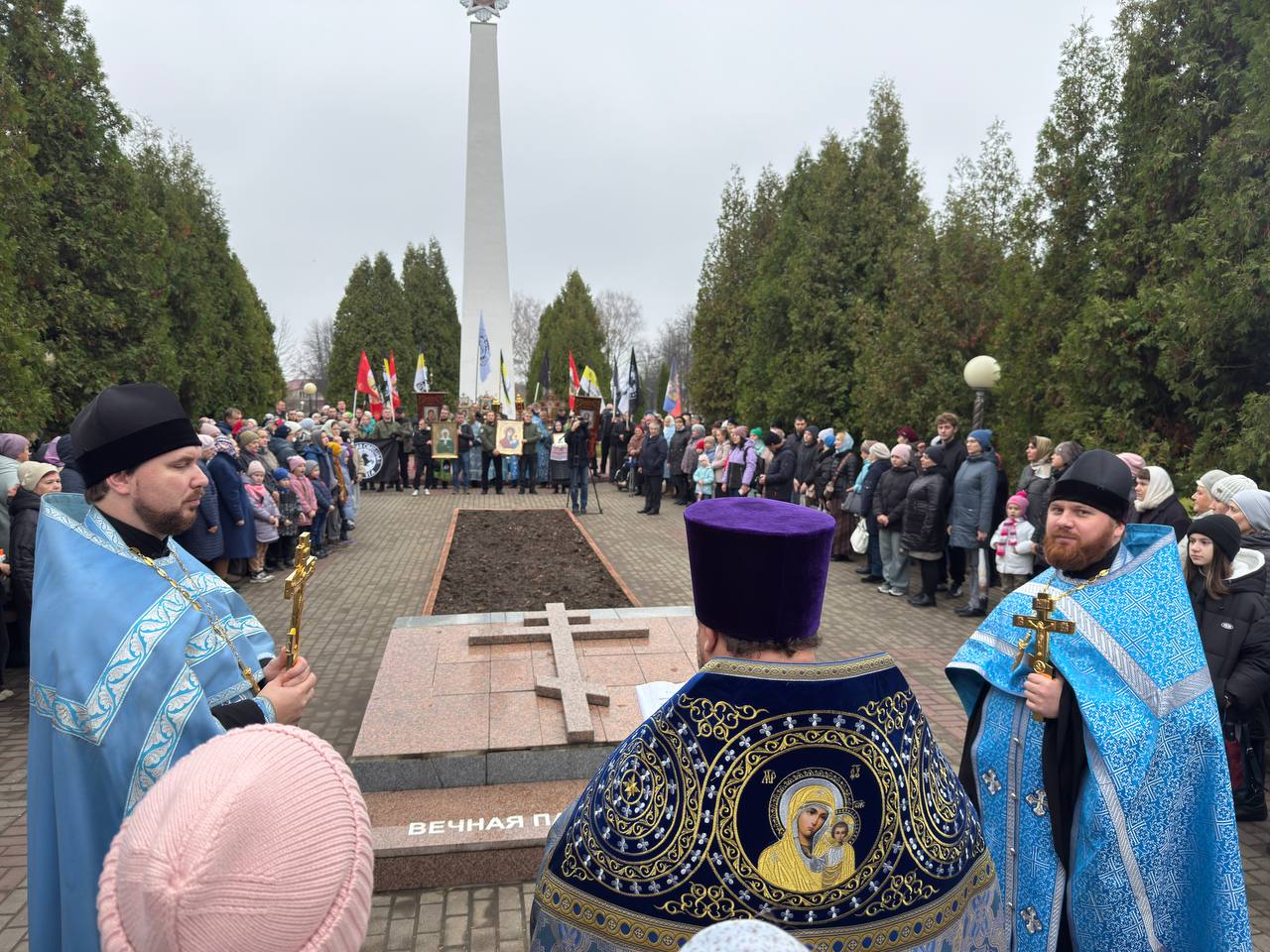 На площади Победы у Поклонного Креста духовенство и верующие совершили молебное пение о Российском воинстве.