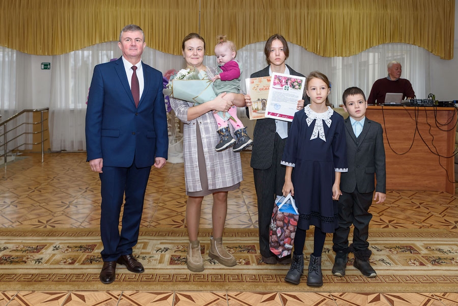 В ДК «Юбилейный» города Кирова состоялось праздничное мероприятие посвященное «Дню матери». В честь многодетных семей, которые воспитывают трех и более детей — самый младший из которых появился на свет в 2025 году, звучали поздравления от почётных гостей.
