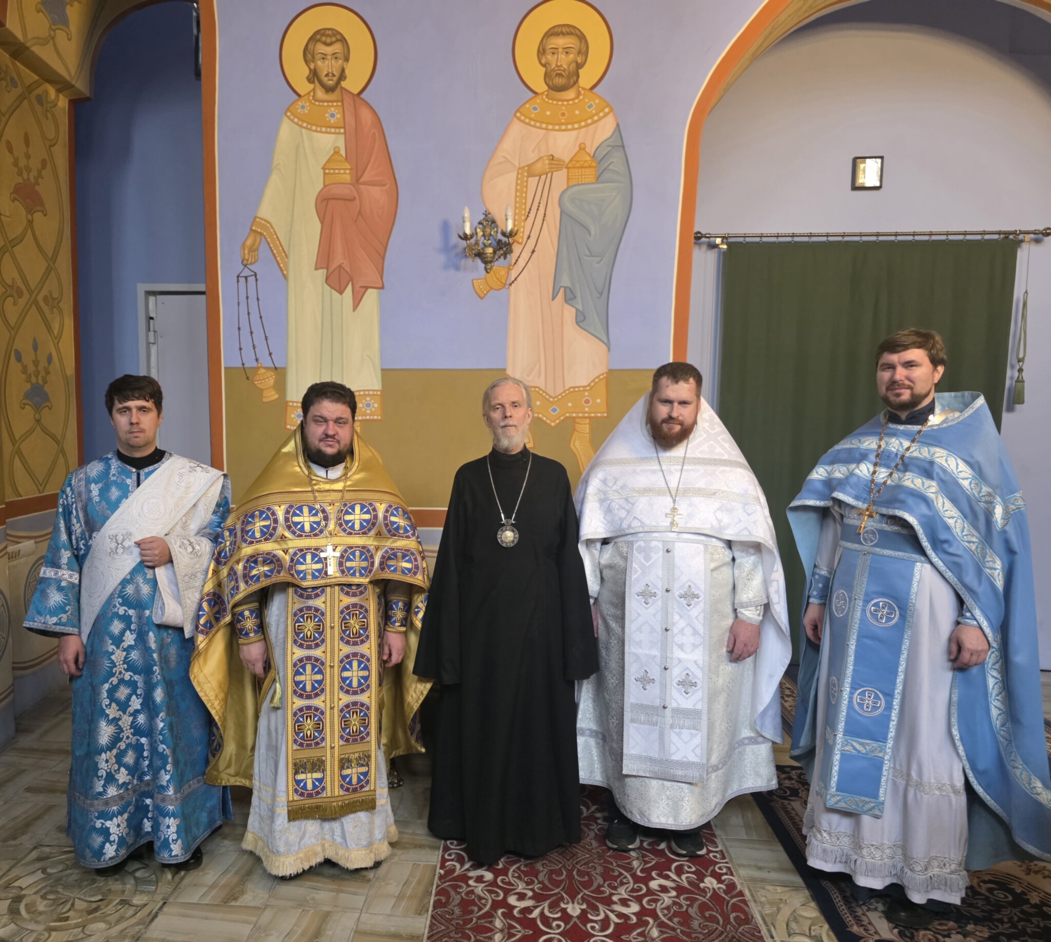 Его Высокопреосвященству сослужили: протоиерей Александр Рябов — настоятель собора, иерей Михаил Камышев и диакон Евгений Иванов — клирики собора.