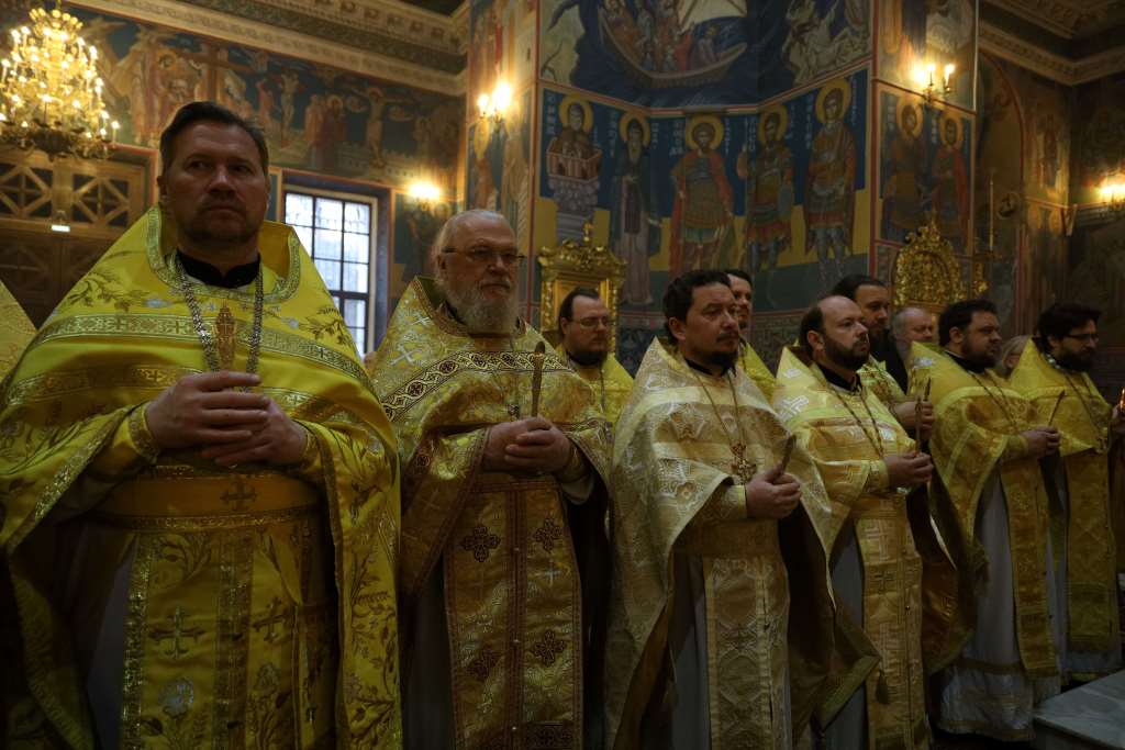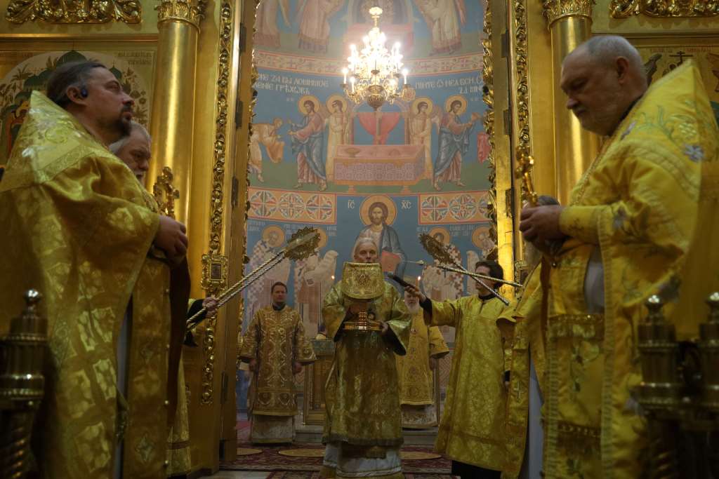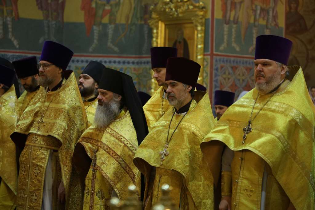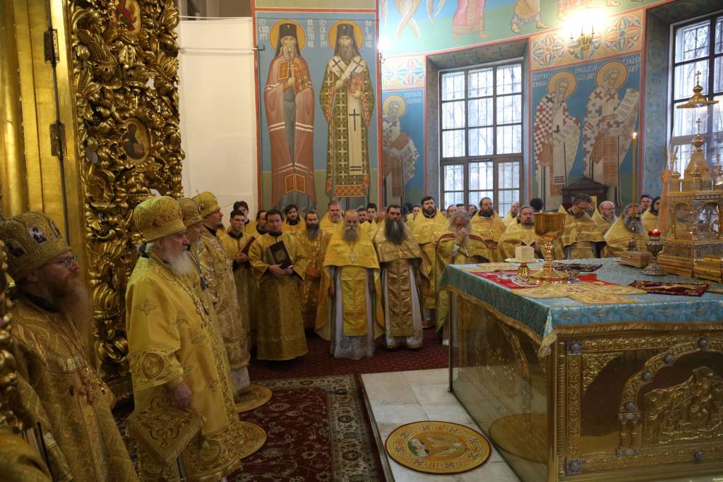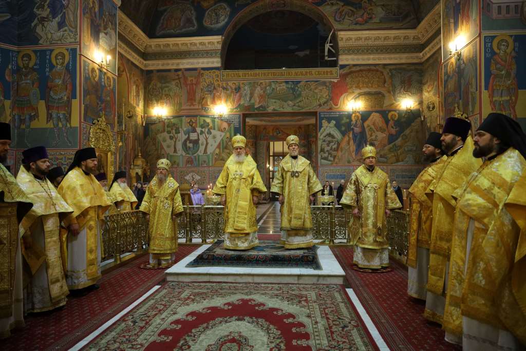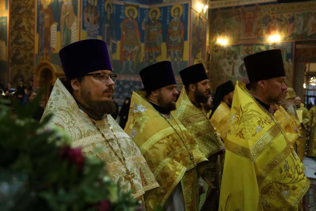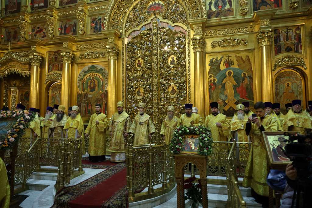 Архипастырям сослужило духовенство Калужской митрополии. После сугубой ектении была вознесена молитва о Святой Руси. По благословению Святейшего Патриарха Московского и всея Руси Кирилла сугубая молитва совершается во всех храмах Русской Православной Церкви.