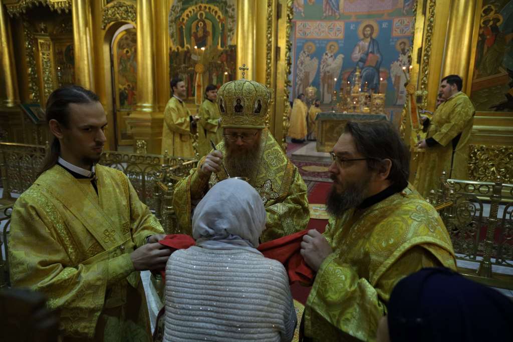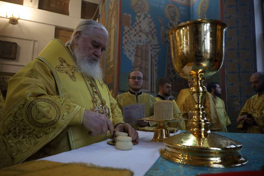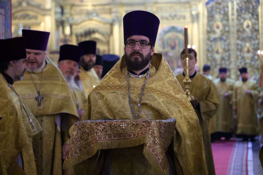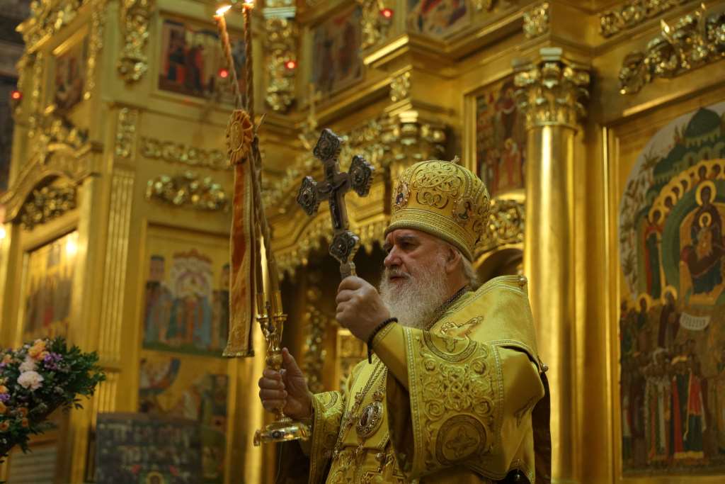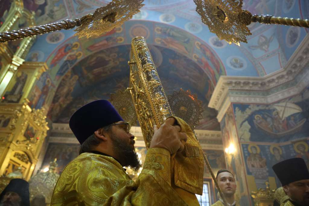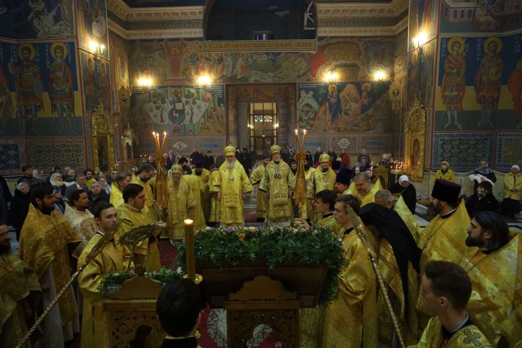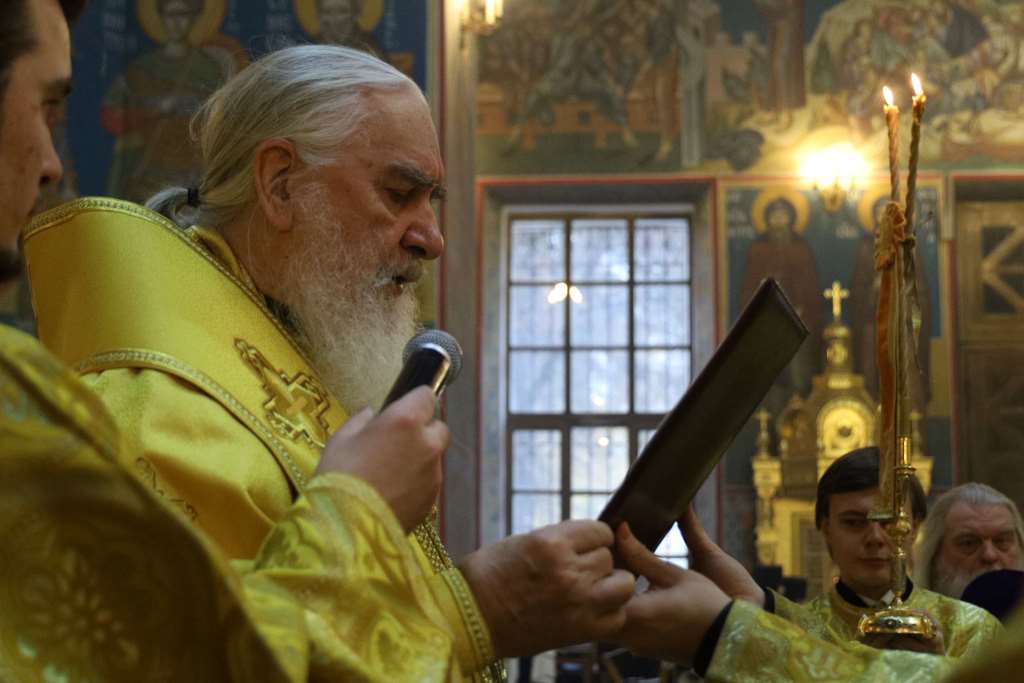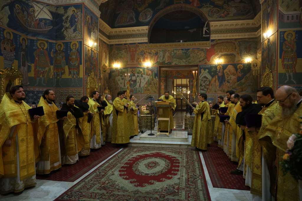 Архипастырям сослужило духовенство Калужской митрополии. После сугубой ектении была вознесена молитва о Святой Руси. По благословению Святейшего Патриарха Московского и всея Руси Кирилла сугубая молитва совершается во всех храмах Русской Православной Церкви.