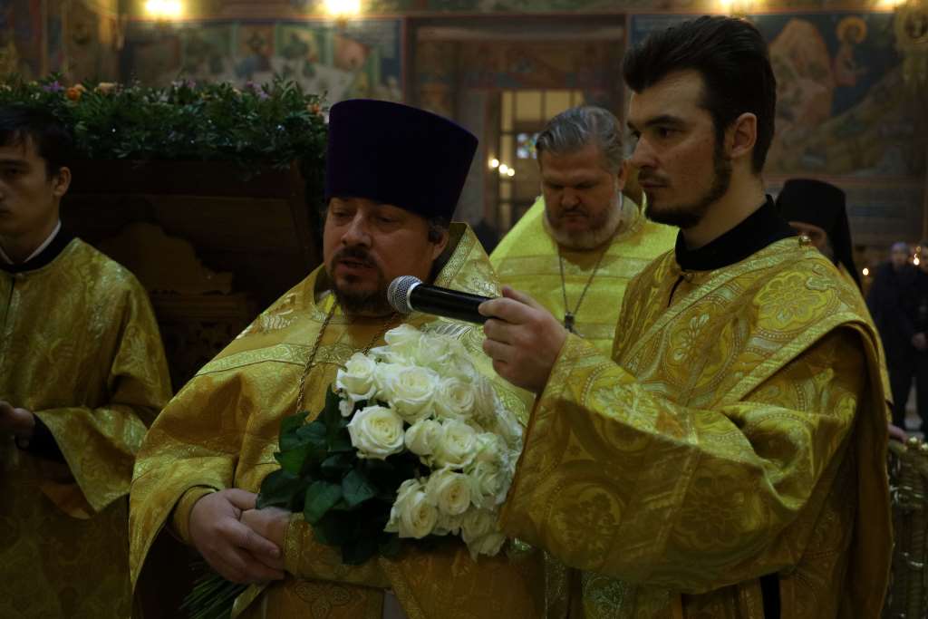 Протоиерей Андрей Богомолов, благочинный Южного округа г. Калуги, и иерей Константин Комаров, благочинный Северного округа г. Калуги, поздравили владыку митрополита от лица духовенства, монашествующих и мирян Калужской митрополии.