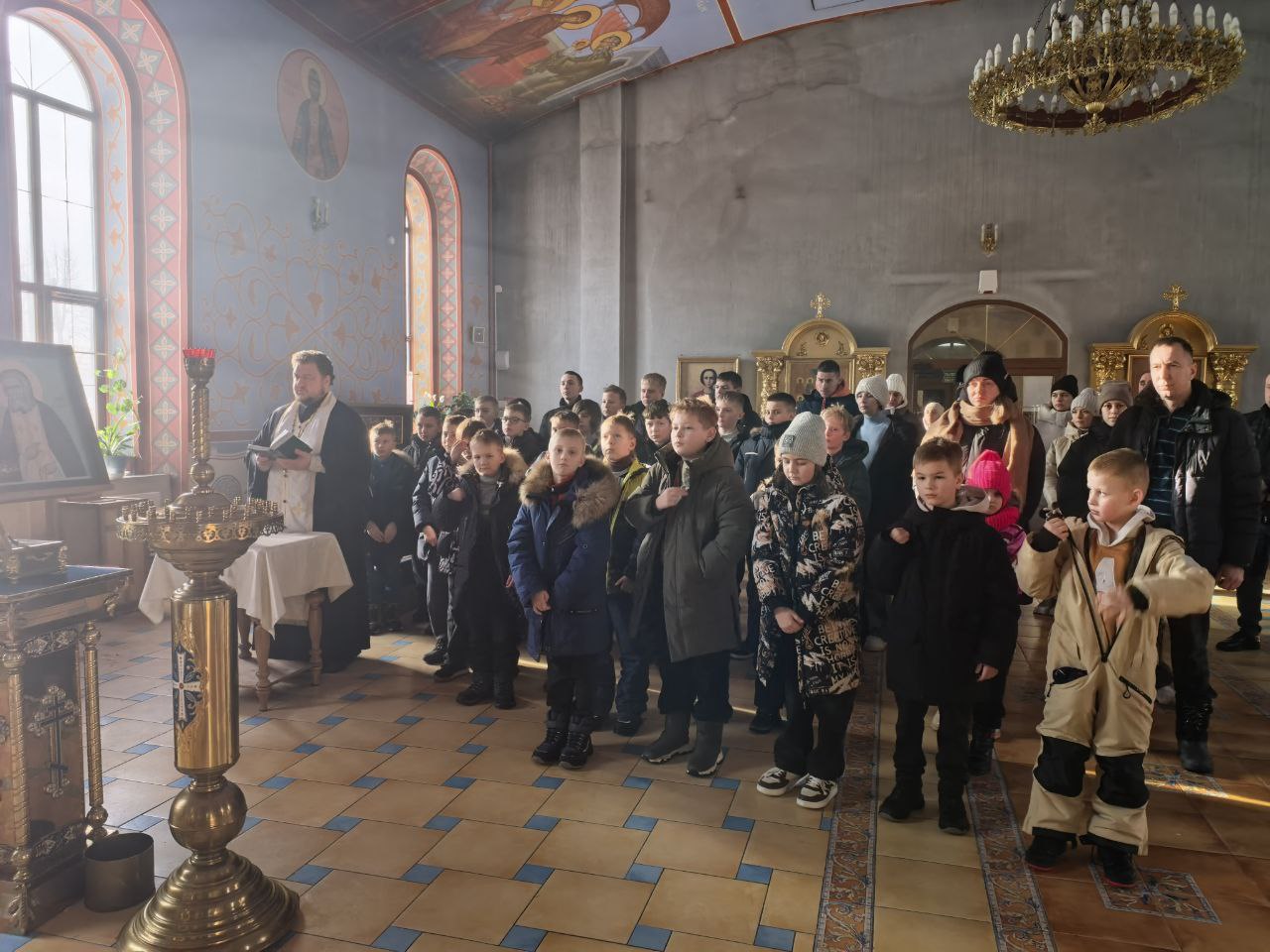 После совместной молитвы священник окропил каждого святой водой и произнес назидательное слово.