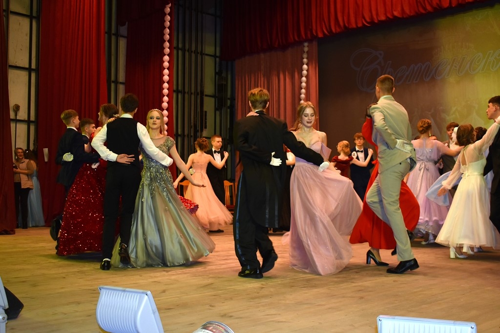 В этом году участниками торжественного бала стали тринадцать пар общеобразовательных учреждений города Кирова. Юноши и девушки исполнили несколько старинных танцев, а также поучаствовали в интеллектуальной игре.