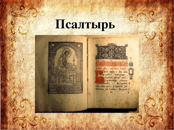 Псалтырь состоит из 150 обращенных к Богу молитвенных песнопений. В древности большая часть этих песнопений исполнялась в храме под аккомпанемент струнного инструмента наподобие арфы. Он назывался псалтирь. От него эти песнопения получили название псалмов. Самый знаменитый автор этих молитв царь Давид. Ему принадлежит большинство псалмов, поэтому собрание их называют еще Псалтирью Давида.