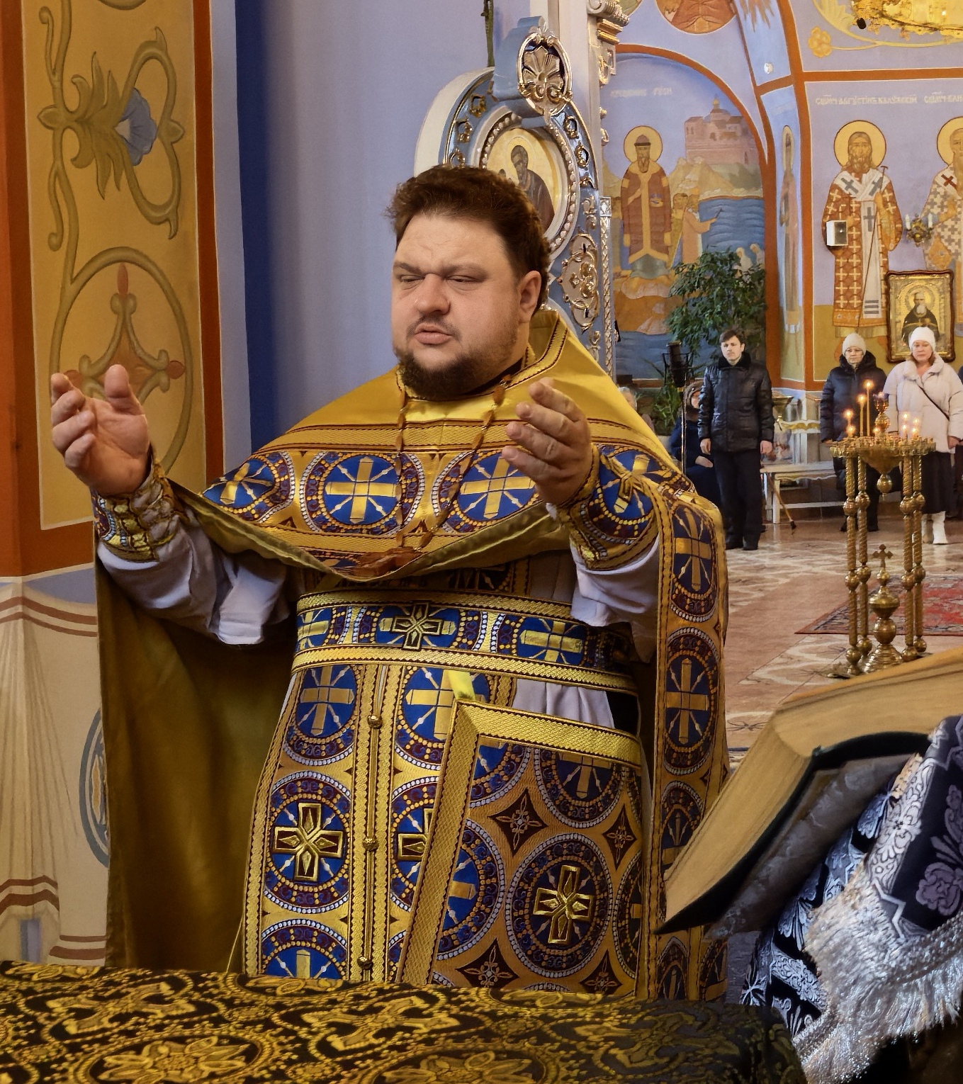 По окончании литургии священник произнес проповедь.
