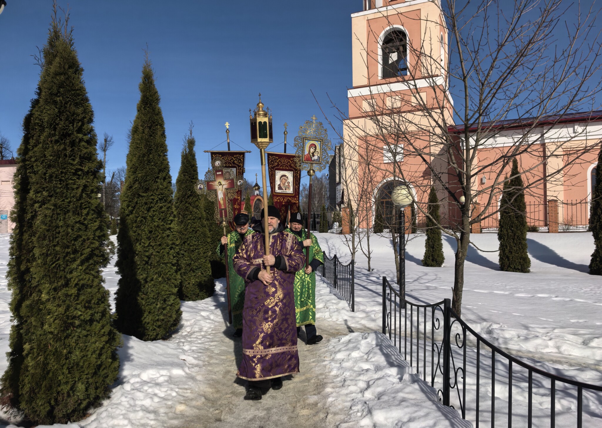 Торжественная встреча проходила на соборной площади у Александро-Невского храма, в которой приняли участие настоятель собора протоиерей Александр Рябов и клирик собора иерей Михаил Камышев.
