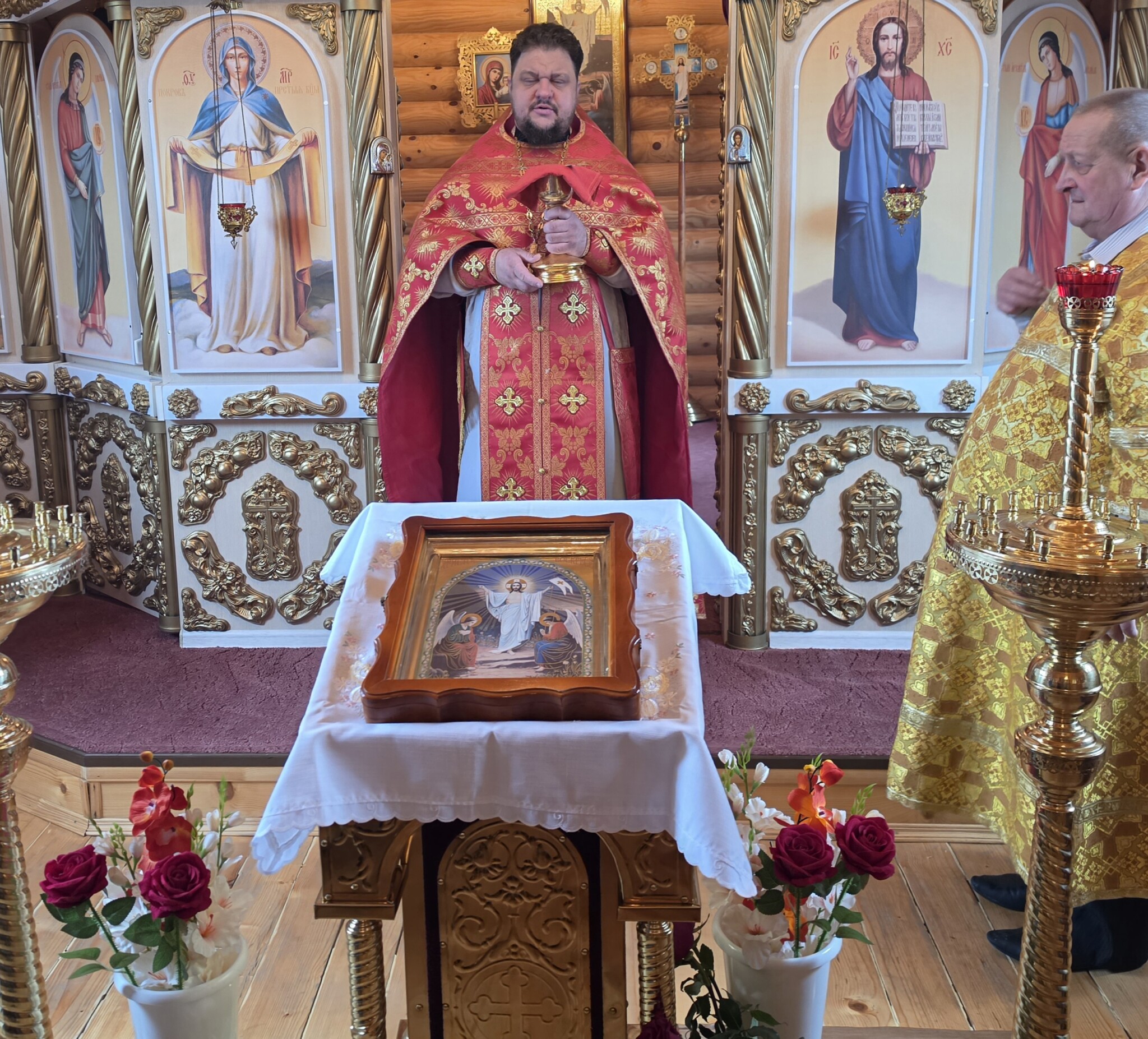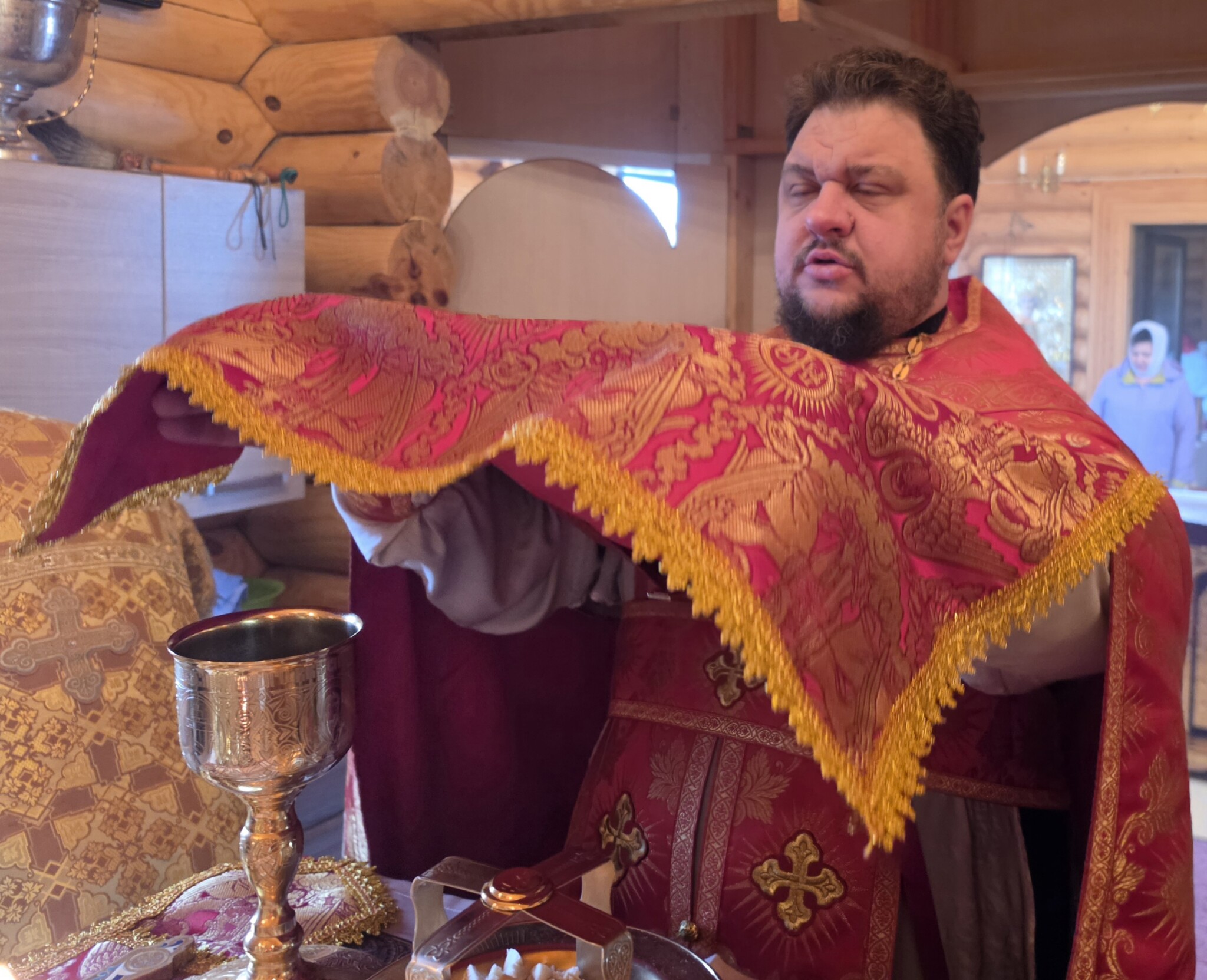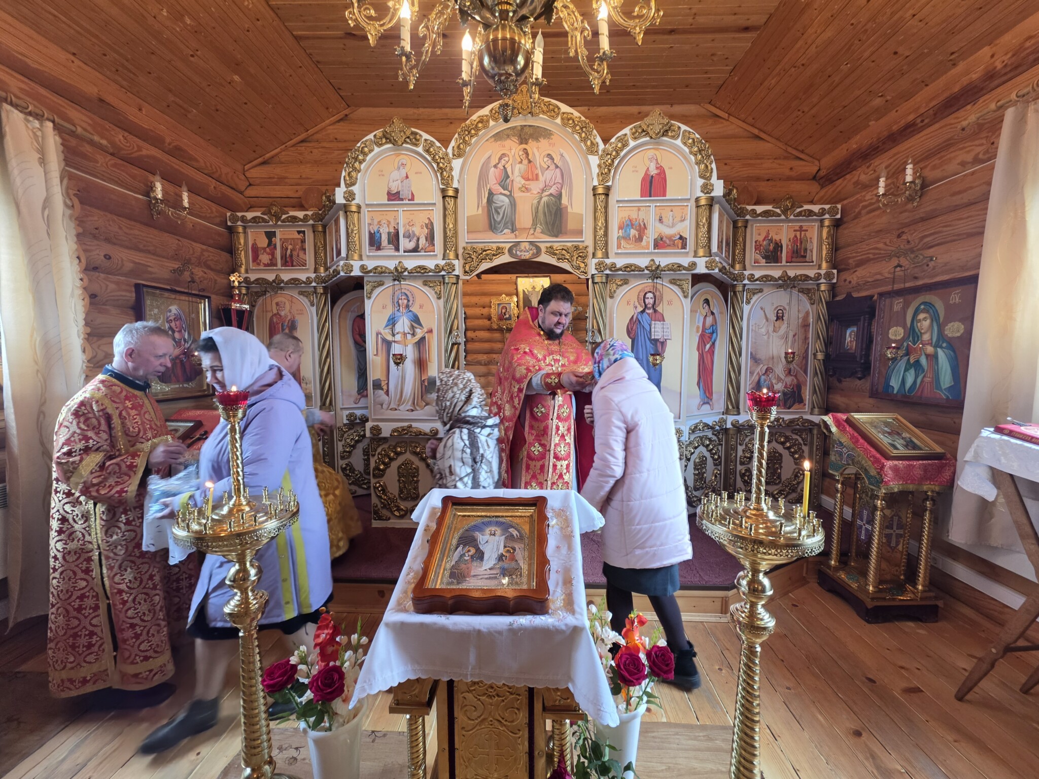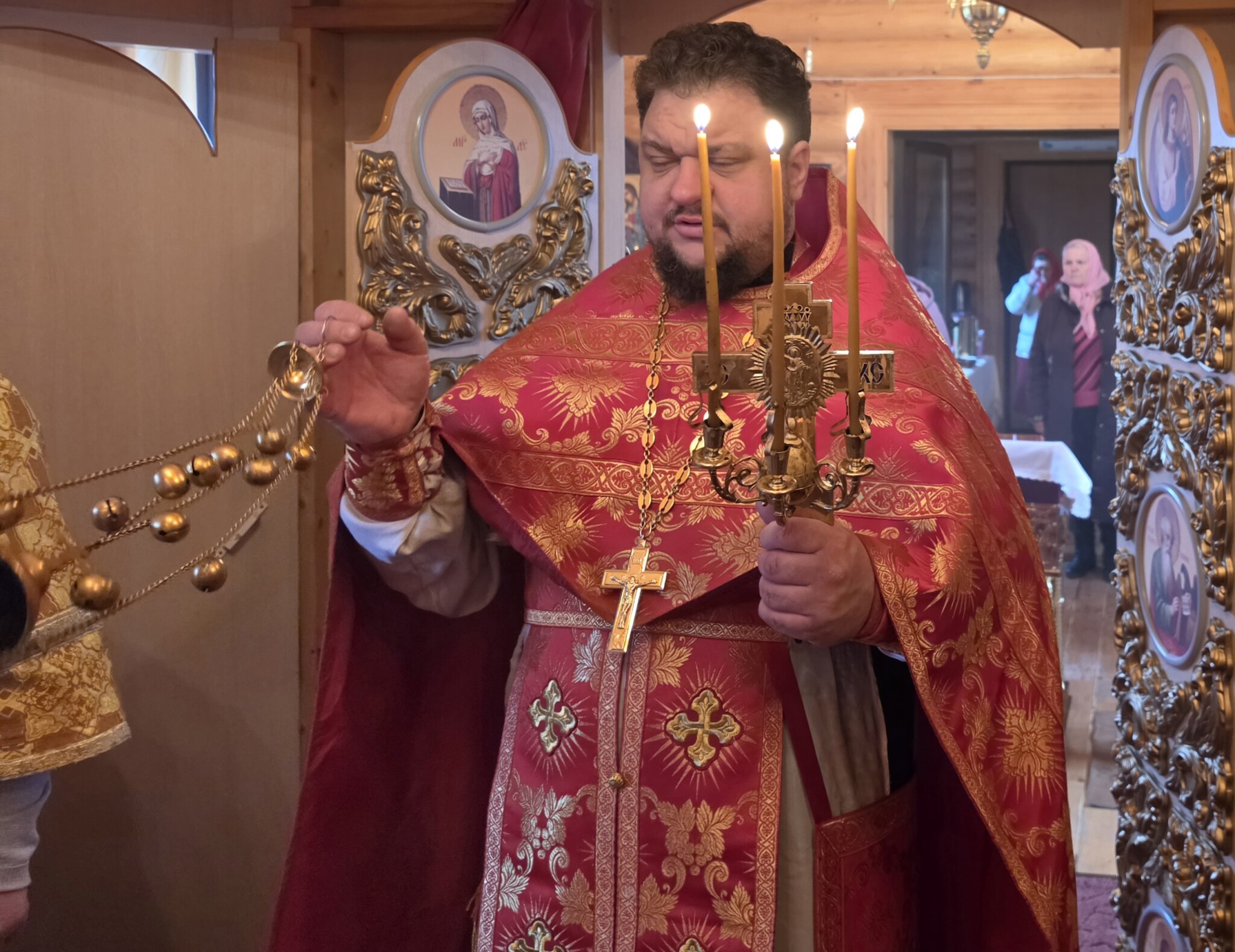 По окончании литургии священник поздравил молящихся с праздником и произнес проповедь.