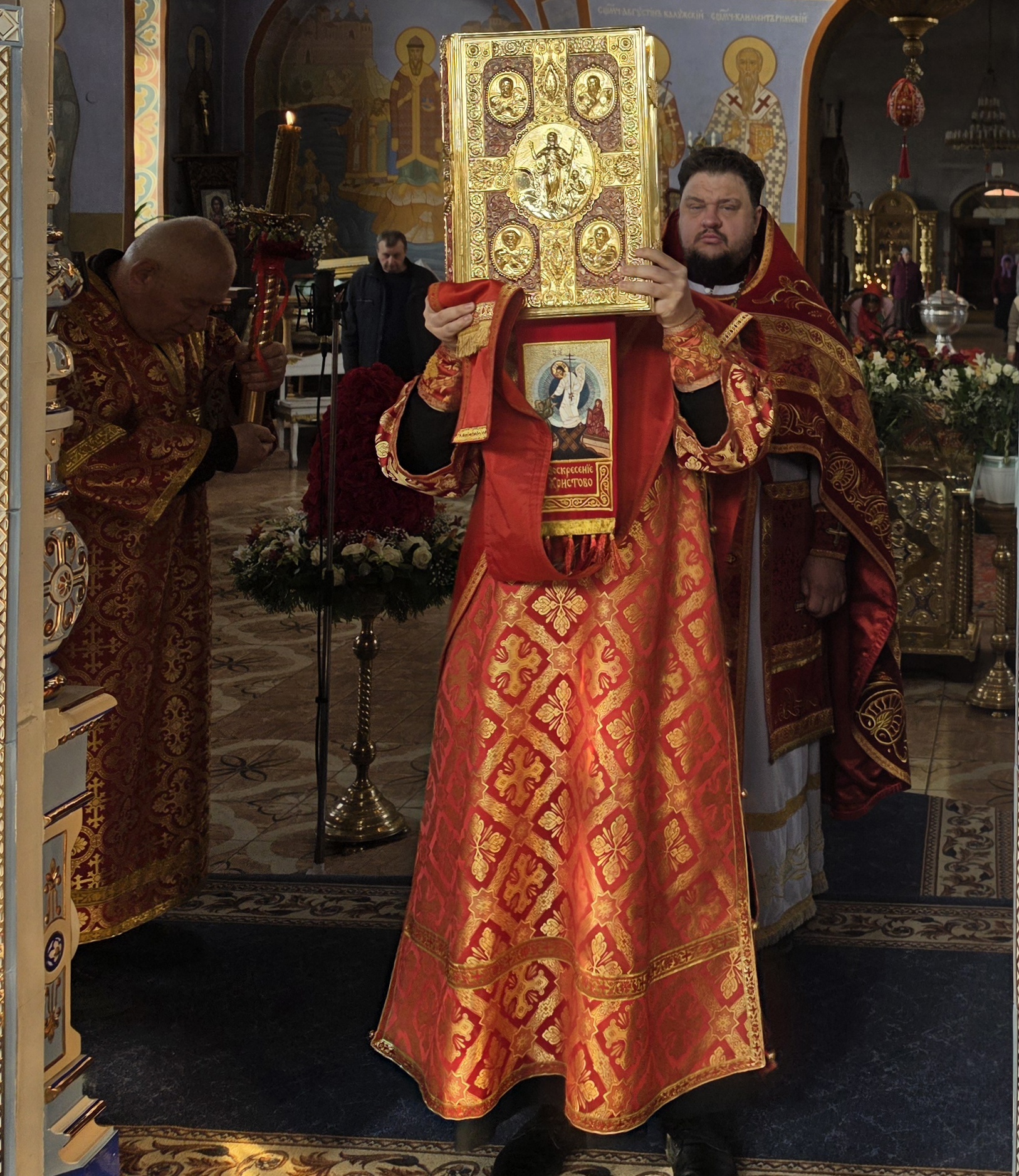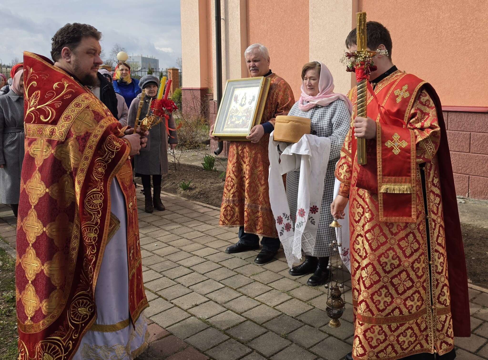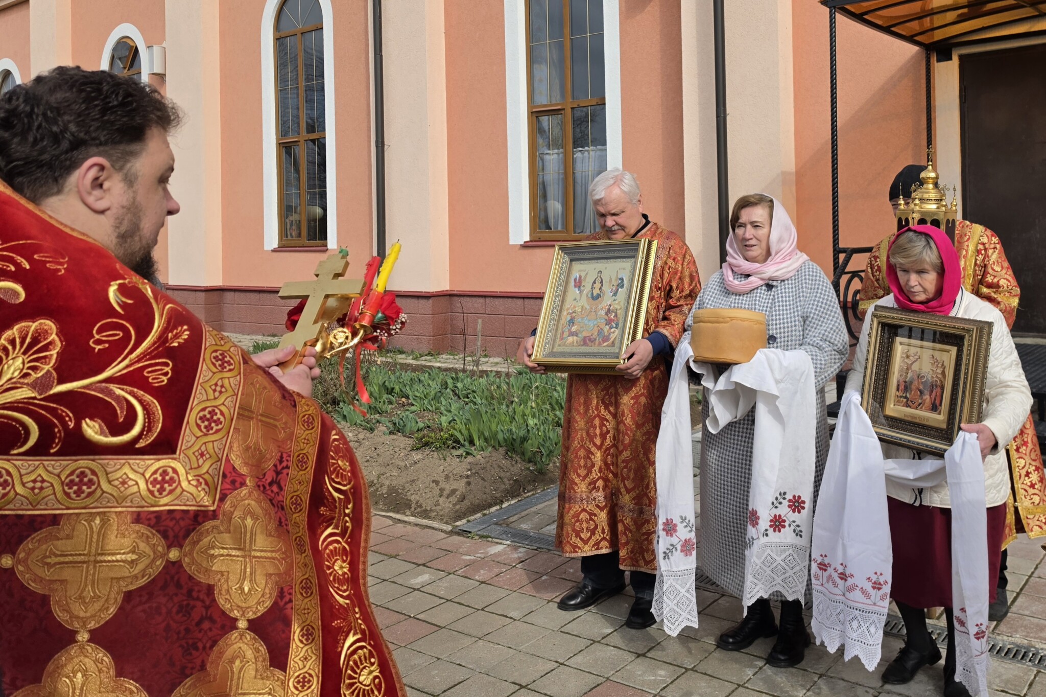 После чтения заамвонной молитвы был совершен Пасхальный Крестный ход вокруг храма.