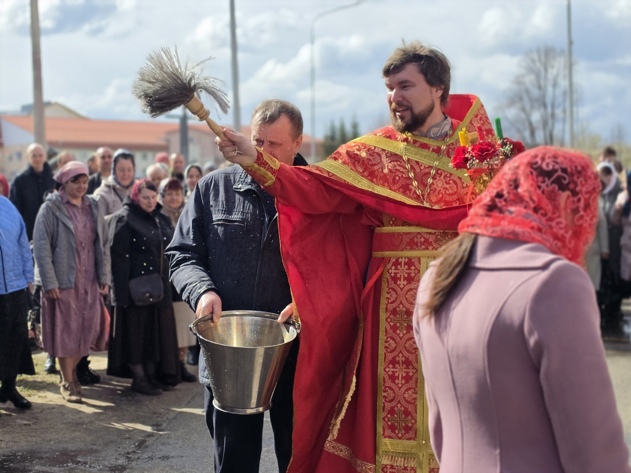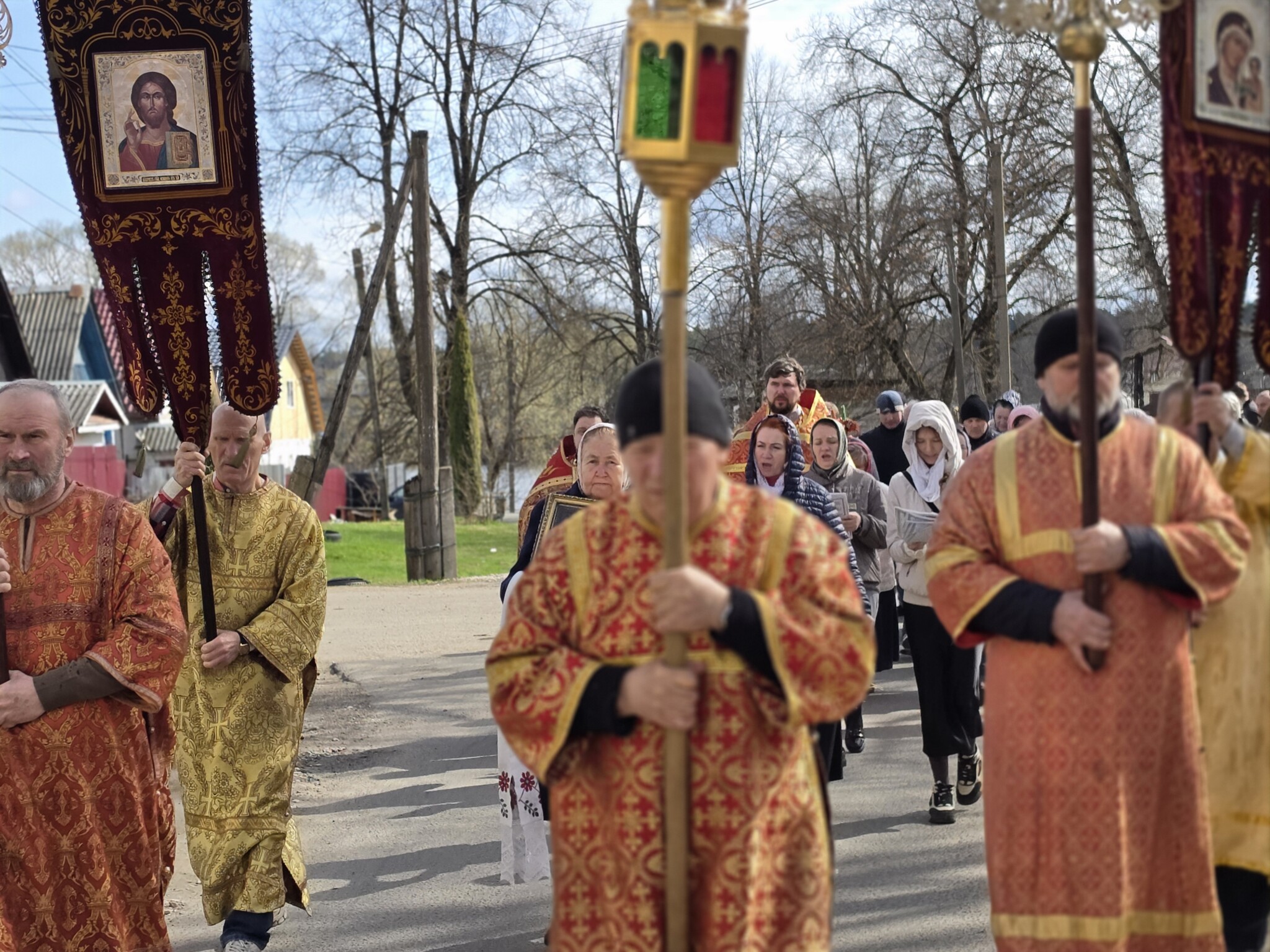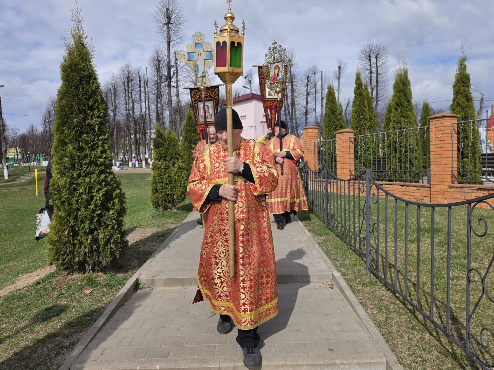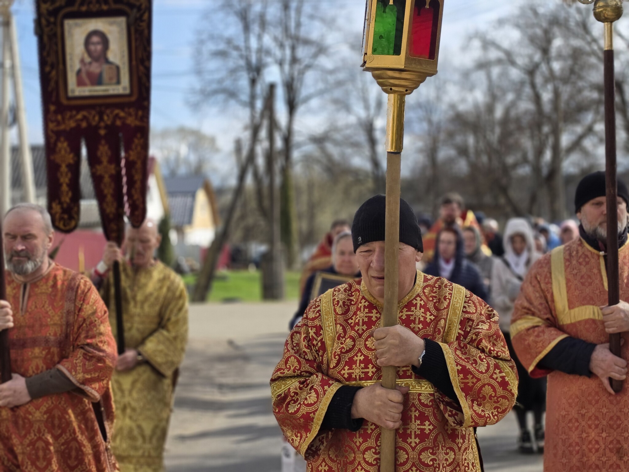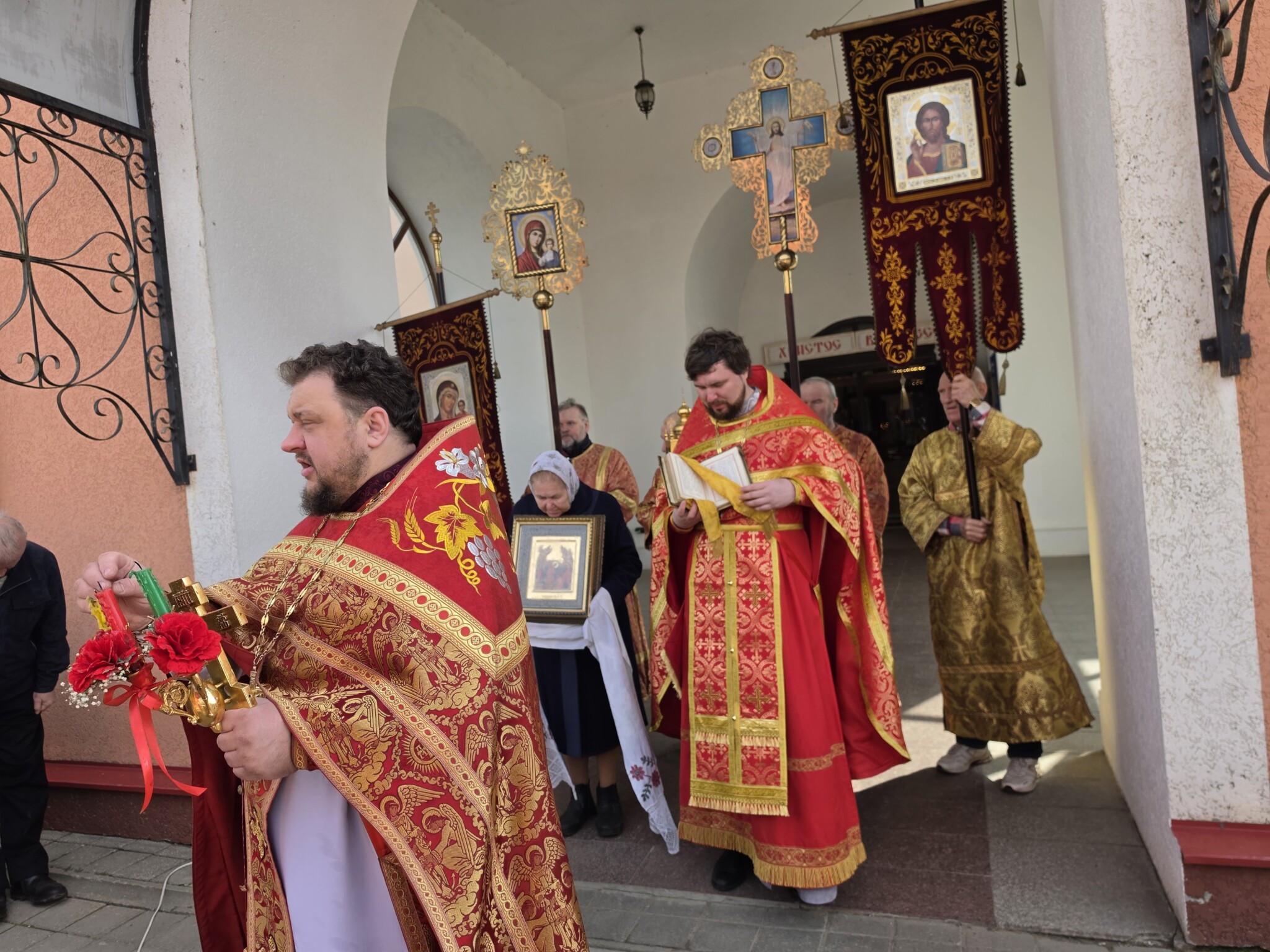 После чтения заамвонной молитвы был совершен Пасхальный Крестный ход вокруг храма.